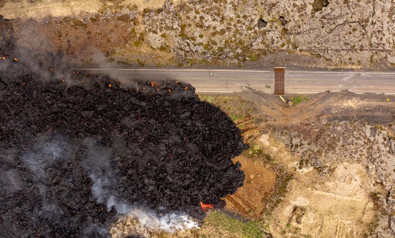 Eina örugga landleiðin til Grindavíkur er um Suðurstrandarveg. Reyndar geta neyðarbílar ekið slóða sem liggur með ströndinni vestur fyrir Grindavík.
