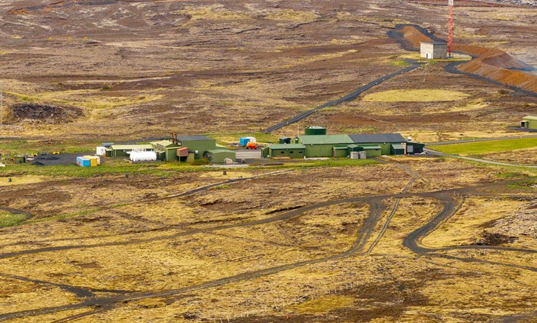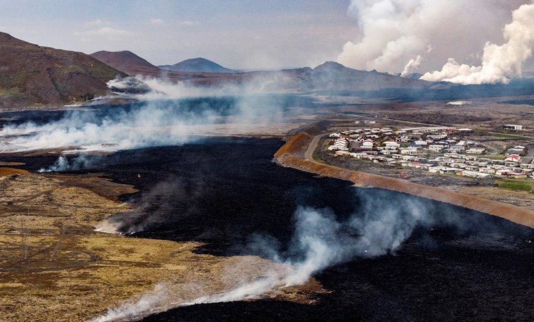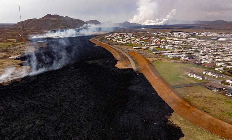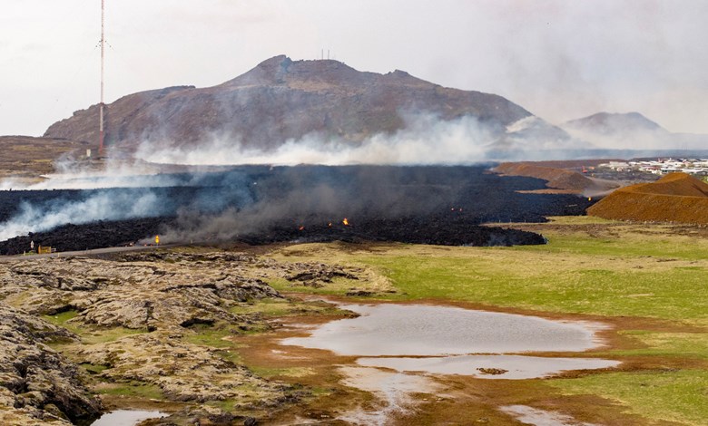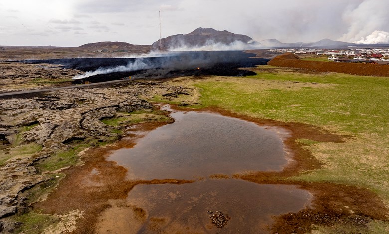 Hrauntungan á sem liggur yfir Nesvegi á um 200 metra í tjarnirnar suðvestan við byggðina í Grindavík.