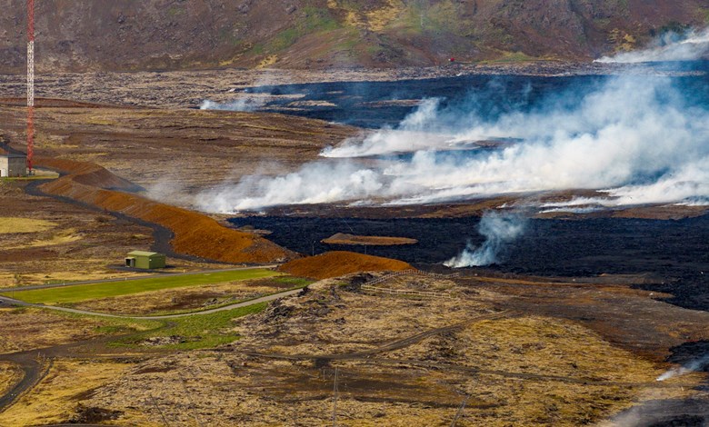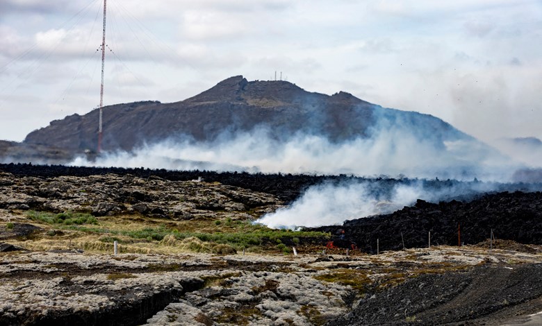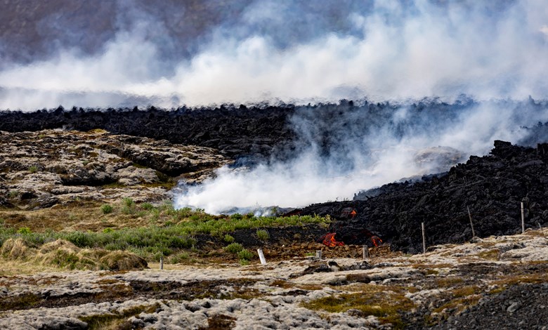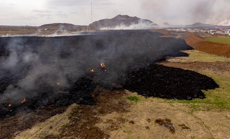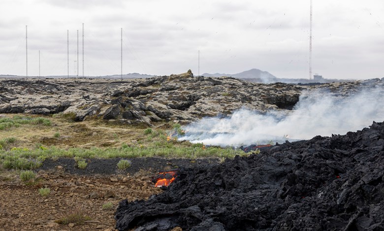 Í myndasafni sem sjá má hér að neðan má sjá myndir sem teknar voru af hraunbreiðunni vestan við byggðina í Grindavík í kvöld.