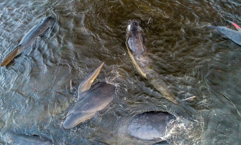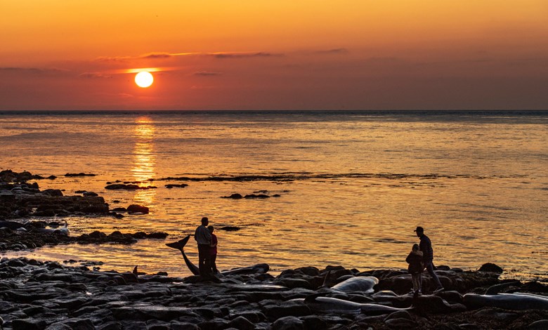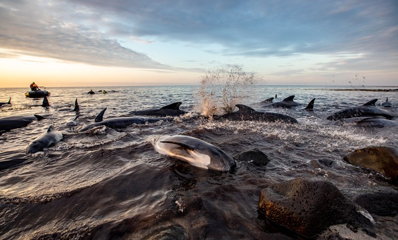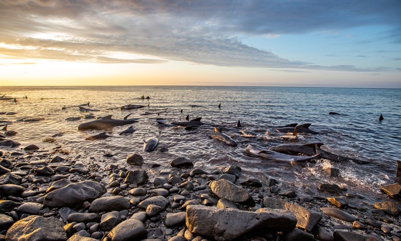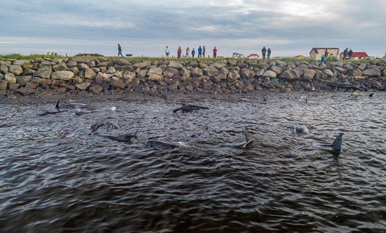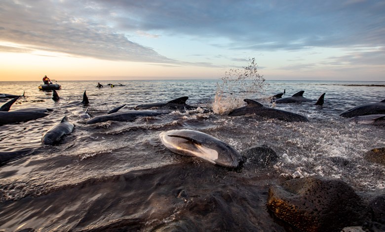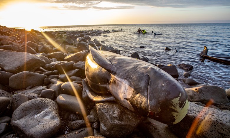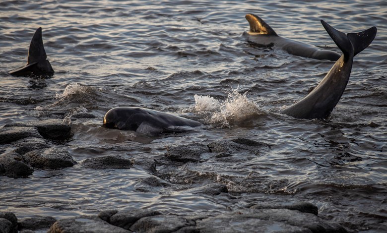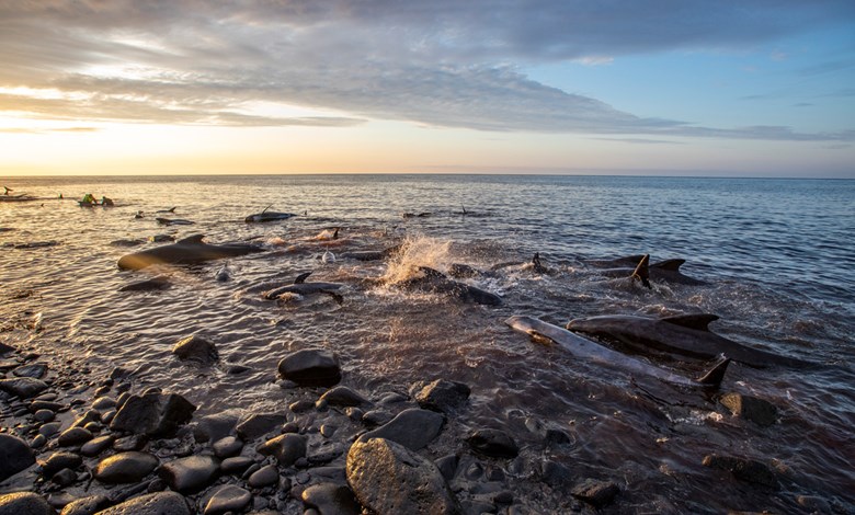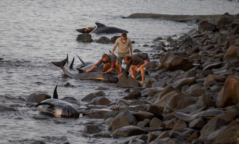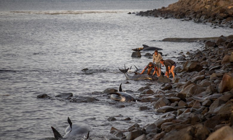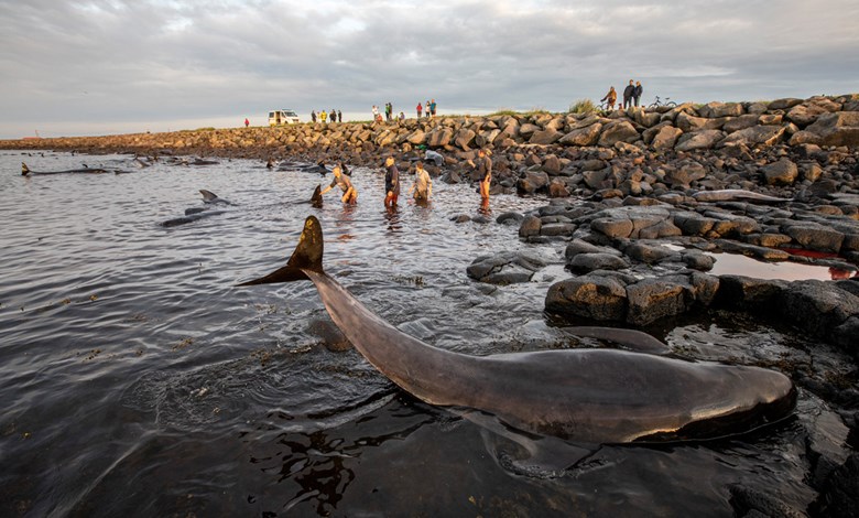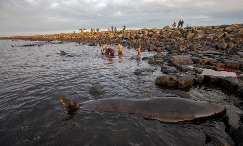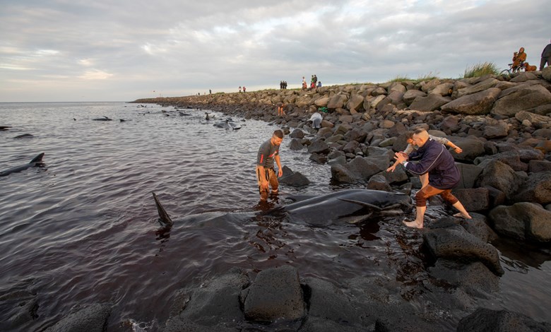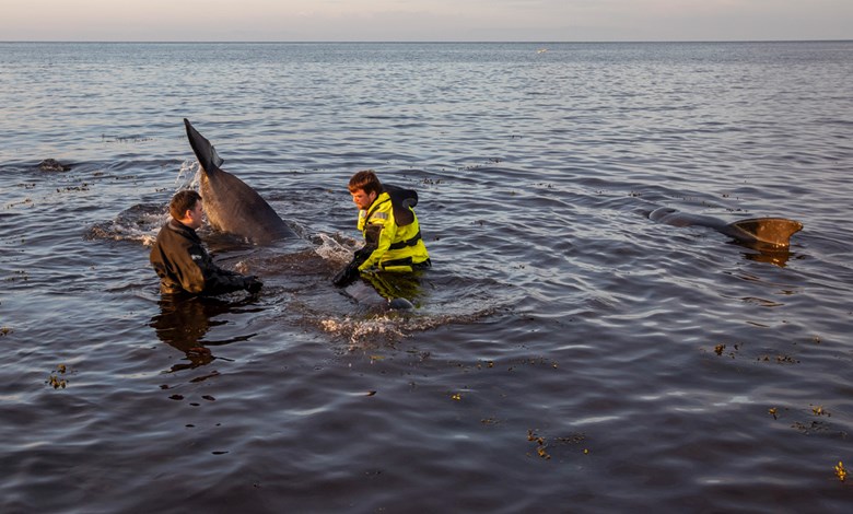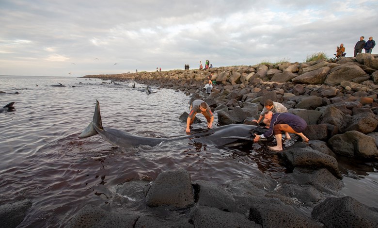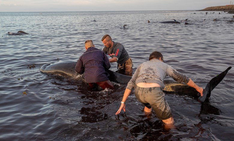 Nokkrir íbúar reyndu að koma dýrunum aftur á flot. Einhverjir hvalir syntu aftur til hafs en aðrir virtust ringlaðir og komu aftur í land.