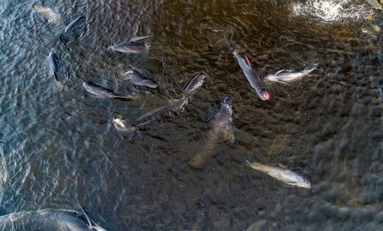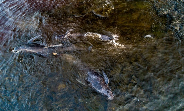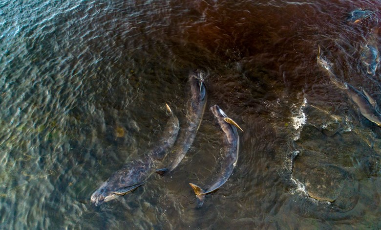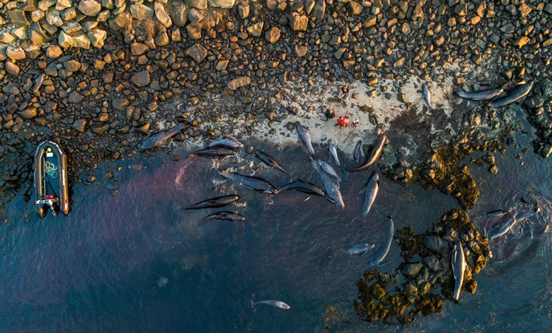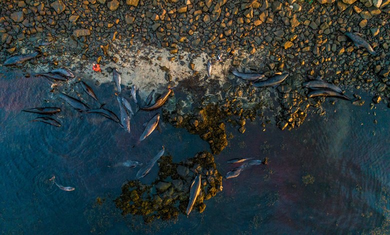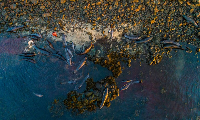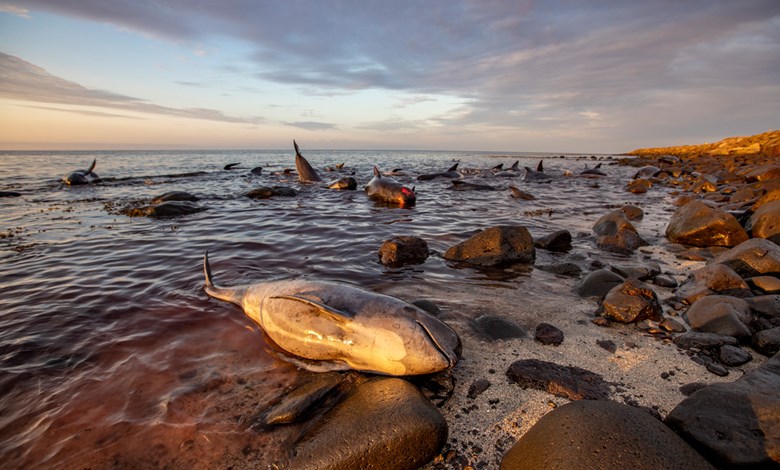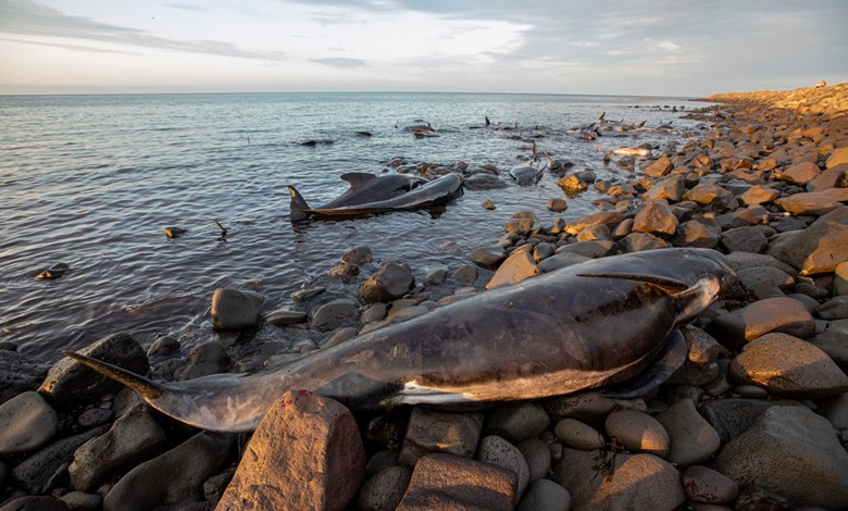 Nokkur dýr virðast hafa synt af það miklu afli í land að þau voru komin langt upp í fjörugrjótið.