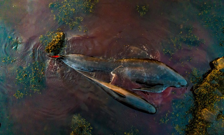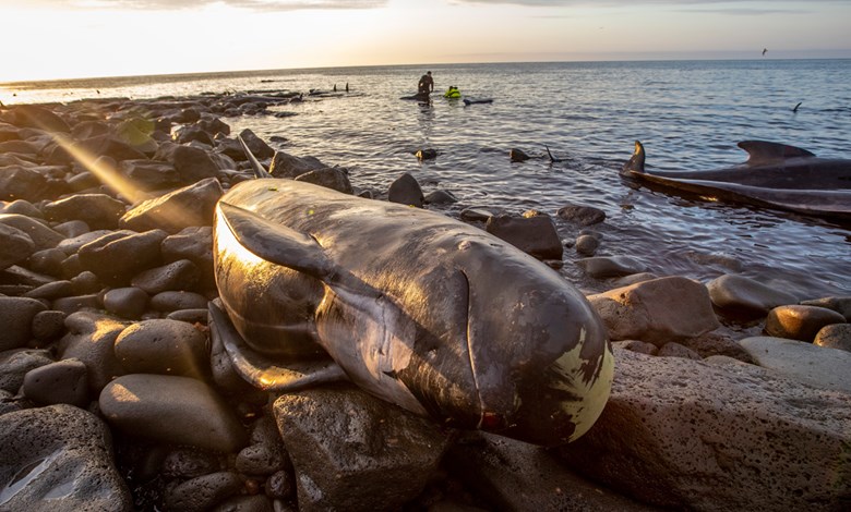 Í nótt átti að dæla sjó á þau dýr sem enn voru á lífi í þeirri von að tækist að koma þeim á flot á næsta flóði.