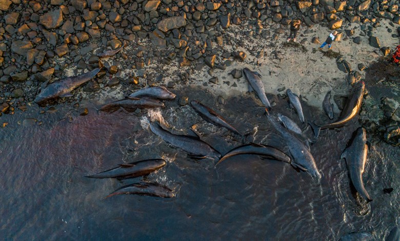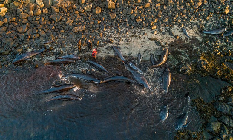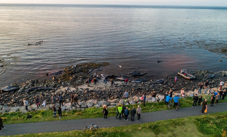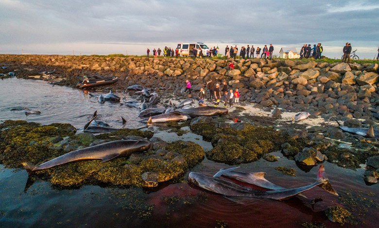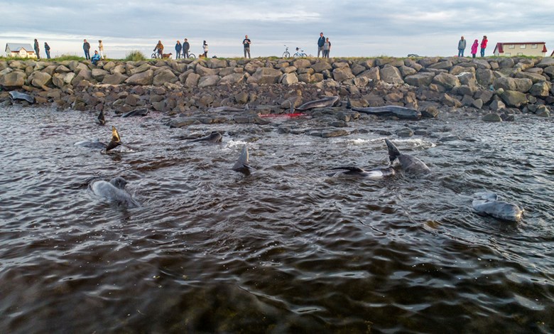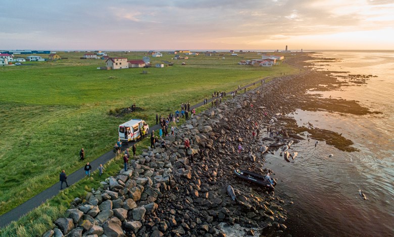 Erfitt björgunarstarf þar sem hvalavaða strandaði í Garði