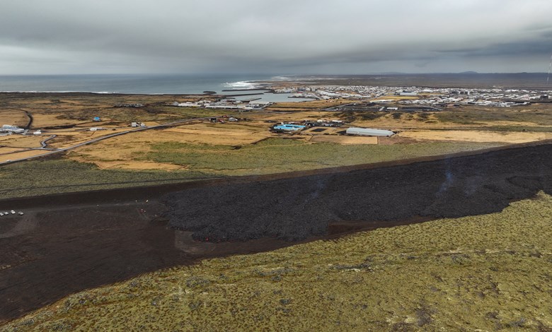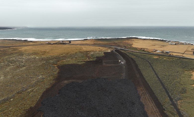 Nýjar myndir af hrauninu við varnargarðana austan Grindavíkur