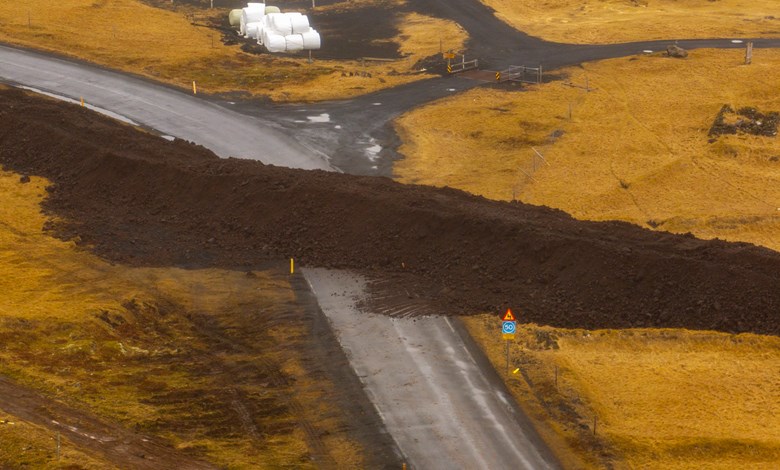 Hér að neðan má sjá nokkrar myndir sem hann hefur tekið í dag. Þarna má sjá hraunið við varnargarðana og einnig garð sem lokar Suðurstrandarvegi og á að verja bæinn Hraun.