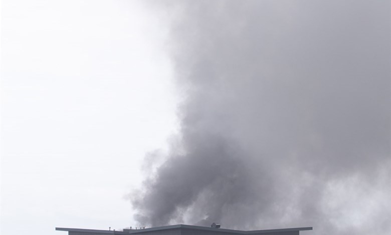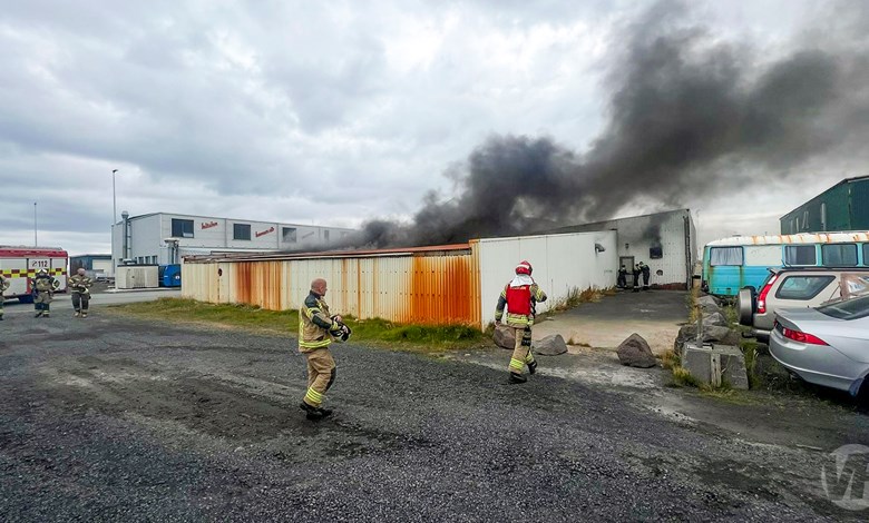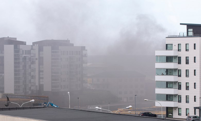 Allt tiltækt slökkvilið vinnur nú að því að ráða niðurlögum eldsins. Íbúar eru hvattir til að loka gluggum og hækka í kyndingu.