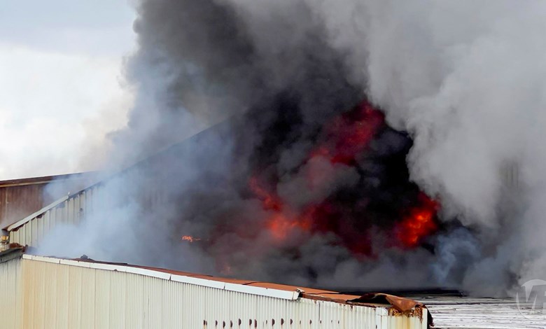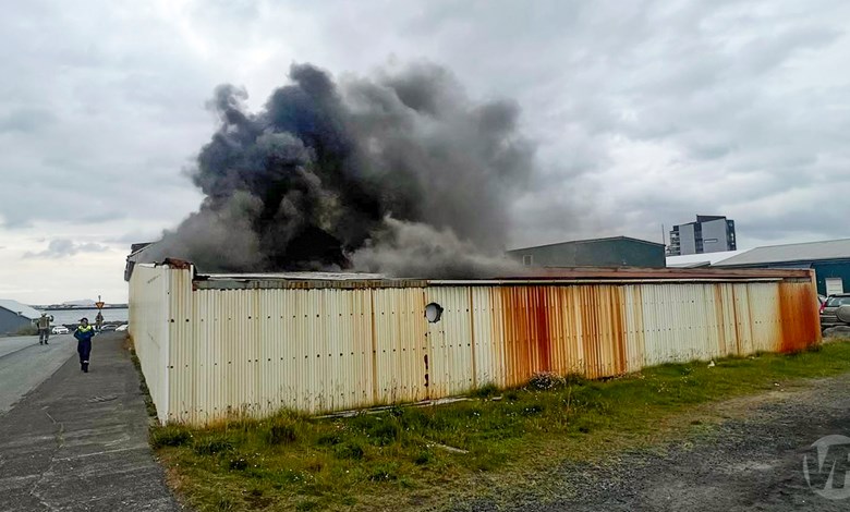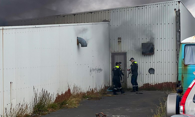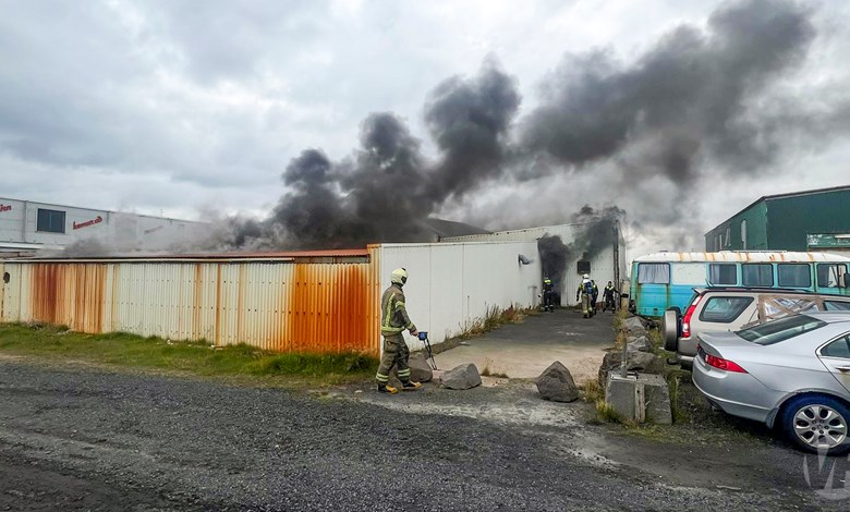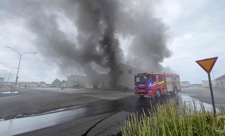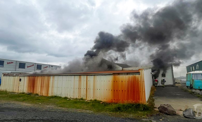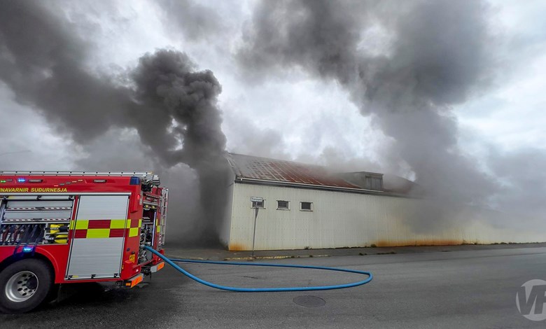 Þykkan mökk leggur yfir Reykjanesbæ vegna eldsvoða í iðnaðarhúsnæði