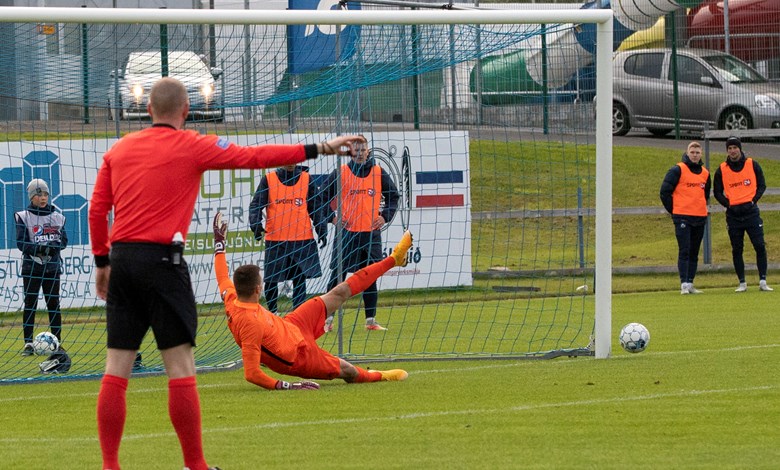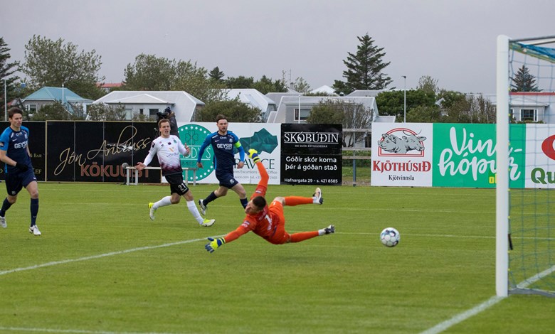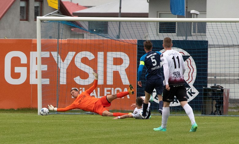 Blikar fengu gullið tækifæri til að komast inn í leikinn nokkrum mínútum síðar þegar Magnús braut á Thomas Mikkelsen, sóknarmanni Blika, og víti var umsvifalaust dæmt. Mikkelsen tók sjálfur vítið, sendi Sindra í vitlaust horn en skaut í stöngina. Hann náði frákastinu sjálfur og setti boltann fram hjá Sindra í markið en það var réttilega dæmt af þar sem einhver annar leikmaður hefði þurft að koma við boltann í millitíðinni.