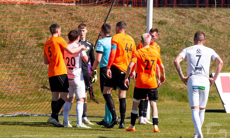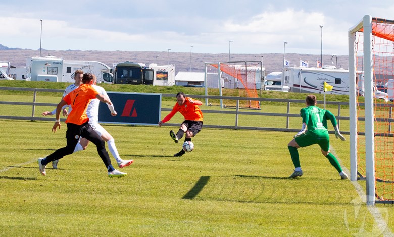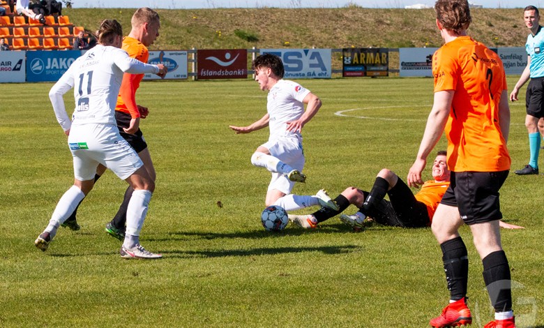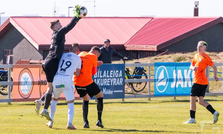Það hefur verið í nógu að snúast hjá knattspyrnumönnum um helgina en í gær og dag var leikið í Lengju-, 2. og 3. deild karla. Í gær fóru Grindvíkingar norður um heiðar og mættu Þór á Akureyri í Lengjudeildinni, Grindvíkingar leiddu leikinn framan af en Þórsarar gáfust ekki upp og skoruðu jöfnunarmark í uppbótartíma.