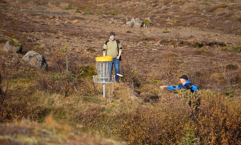„Fyrir tvo saman að fara átján körfu hring í frisbígolfi tekur svona tvo tíma, það fer auðvitað líka eftir hversu góður maður er en ef það er gott flæði og maður er ekki að skjóta út og suður þá tekur þetta yfirleitt í kringum tvo tímana.“