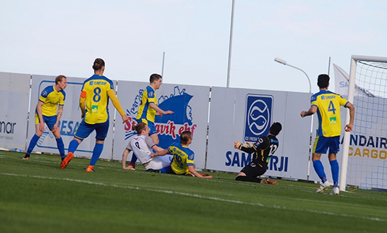 Lokatölur leiksins 2-1 og Grindavík því komið með fjórtán stig í deildinni og situr í efsta sæti eftir leiki kvöldsins. Meðfylgjandi myndir tók Hilmar Bragi, blaðamaður Víkurfrétta.