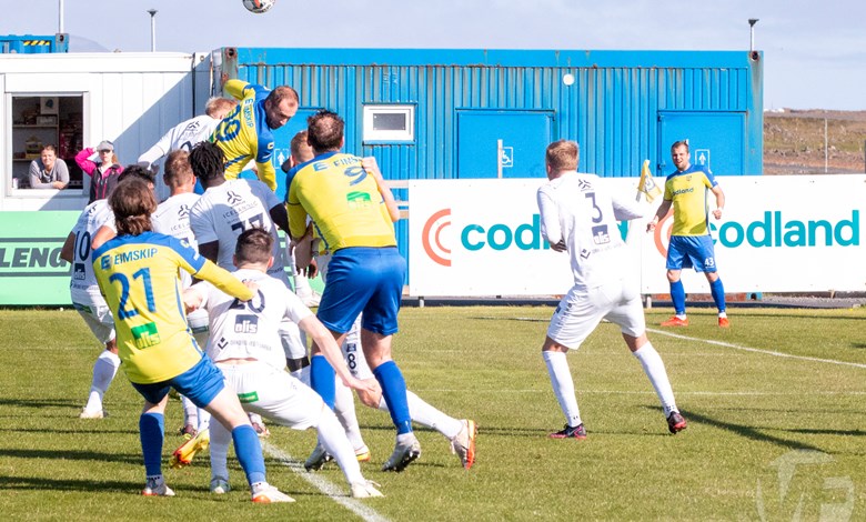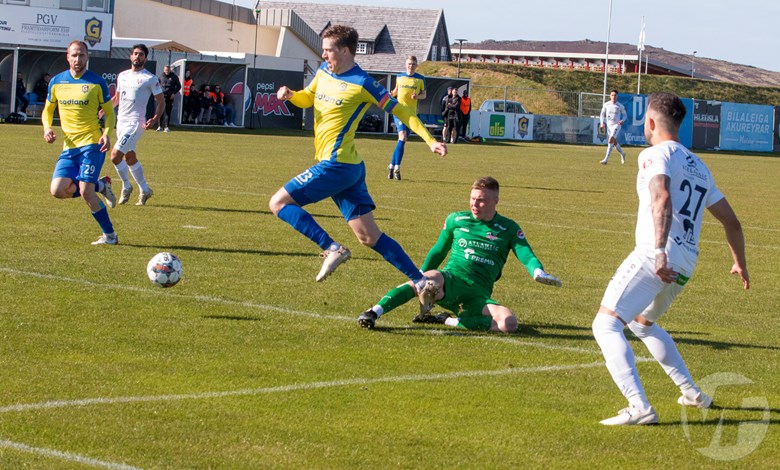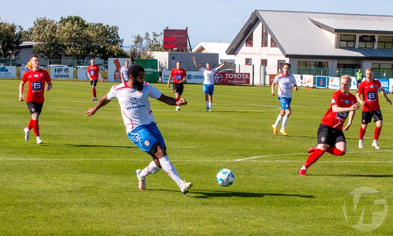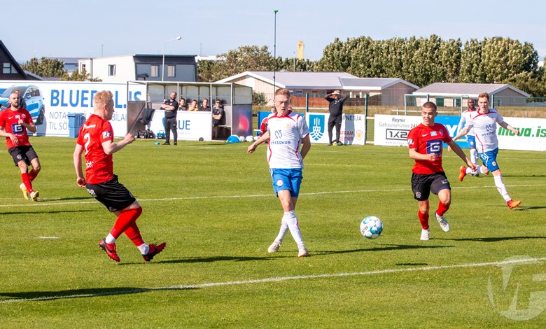 Grindvíking lentu tveimur mörkum undir á heimavelli gegn Vestra í Lengjudeild karla í knattspyrnu en komu til baka og jöfnuðu með tveimur mörkum undir lok leiks. Grindvíkingar sóttu hart að marki Vestra og voru ekki langt frá því að taka öll stigin. Á sama tíma tapaði Þróttur heima fyrir KV með tveimur mörkum gegn einu. Reynir Sandgerði reif sig í gang og vann góðan sigur á Magna í 2. deild karla en Reynismenn sitja áfram í fallsæti.