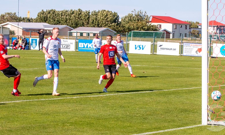 Fleiri urðu mörkin ekki og Reynismenn minnka forskot KFA, sem er í þriðja neðsta sæti, í fjögur stig í fallbaráttunni. Þegar þrjár umferðir eru eftir þarf Reynir að sækja fimm fleiri stig en KFA til að halda sætinu í deildinni en þessi tvö lið mætast í síðustu umferðinni sem gæti orðið hreinn úrslitaleikur um fall.