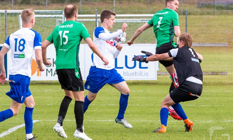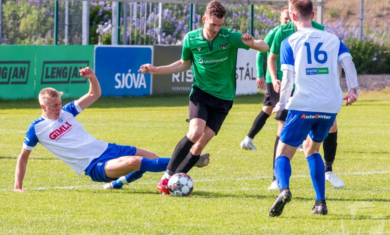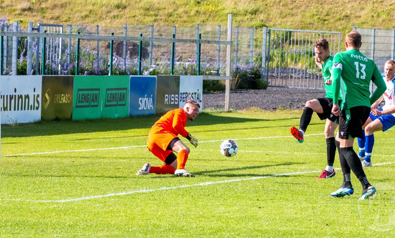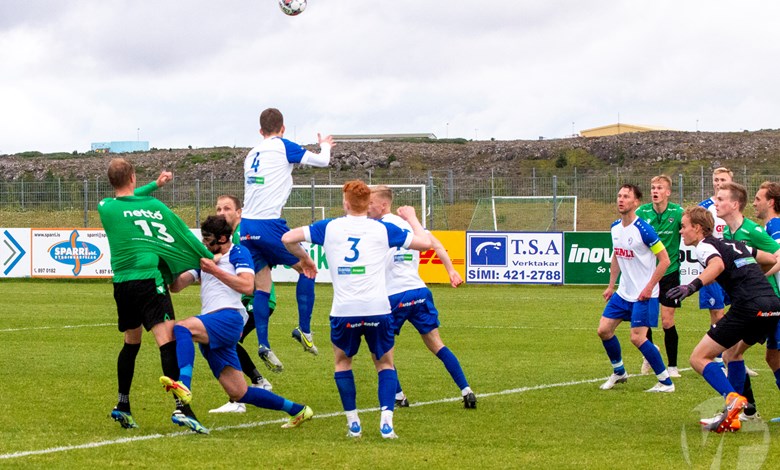 Það hefur mikið verið um að vera á knattspyrnuvöllunum þessa helgina en gengi Suðurnesjaliðanna er svolítið í ökkla eða eyra. Grindvíkingar unnu góðan sigur á Gróttu í Lengjudeild karla í dag en á sama tíma tapaði Þróttur enn og aftur. Njarðvíkingar halda sig við sama heygarðshornið og unnu sigur á ÍR í 2. deild karla í gær en Reynismenn töpuðu stórt fyrir KFA. Að lokum gerðu Víðismenn 2:2 jafntefli við Kára í 3. deild karla í dag.