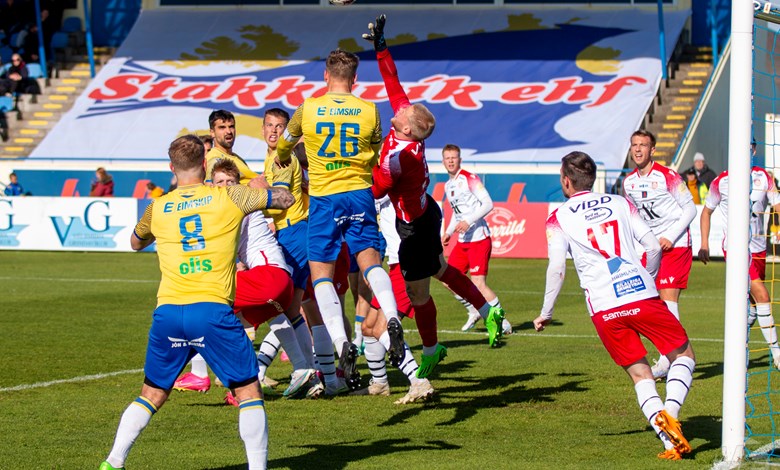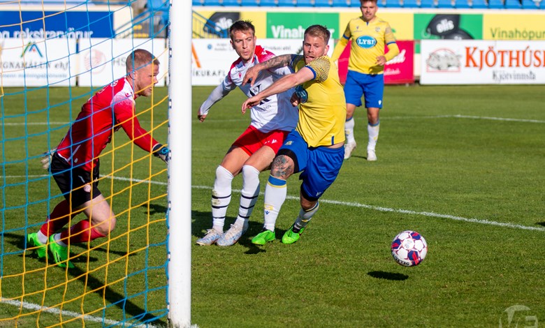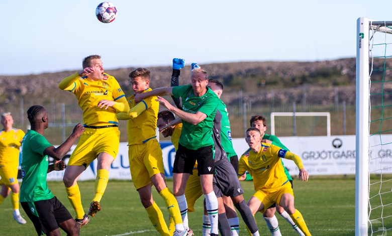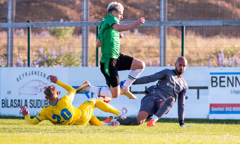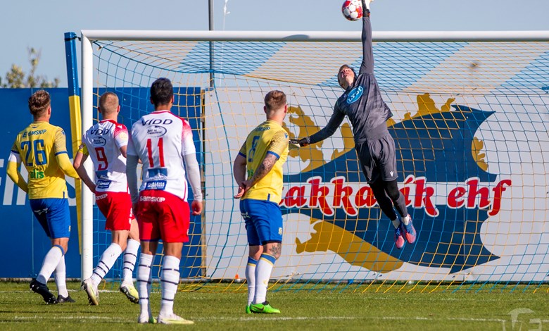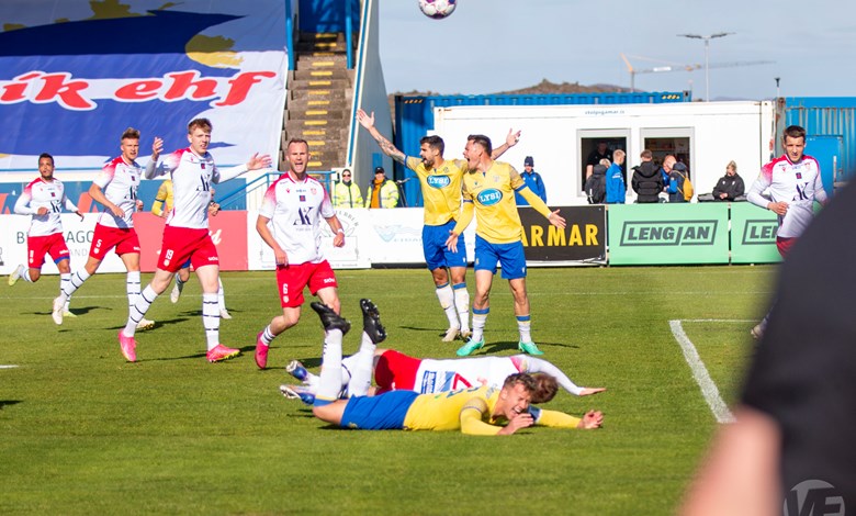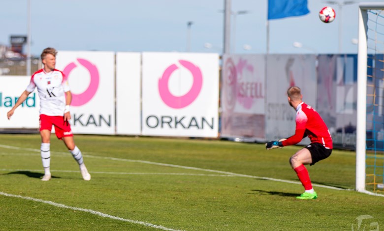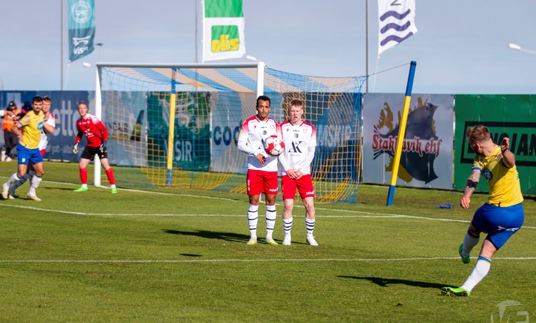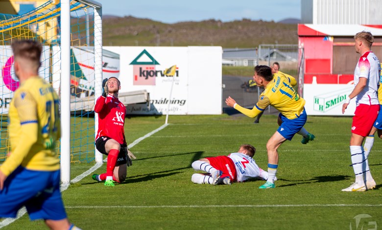 Á 22. mínútu áttu Njarðvíkingar vel útfærða skyndisókn þar sem boltinn barst út á vænginn til Oliver Keelart, hann sendi fyrir markið á Oumar Diouck sem afgreiddi boltann í netið. Keelart var hins vegar dæmdur rangstæður og markið stóð ekki.