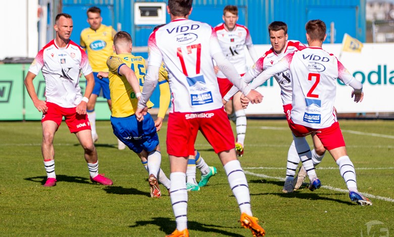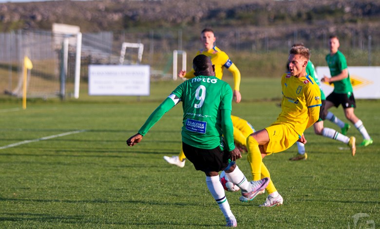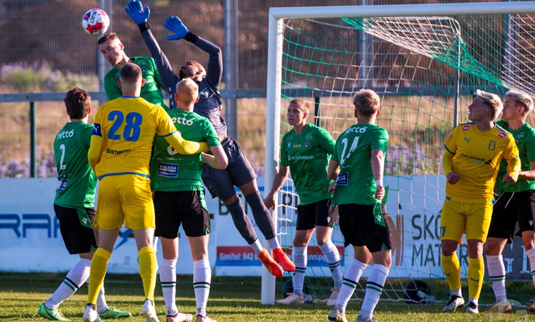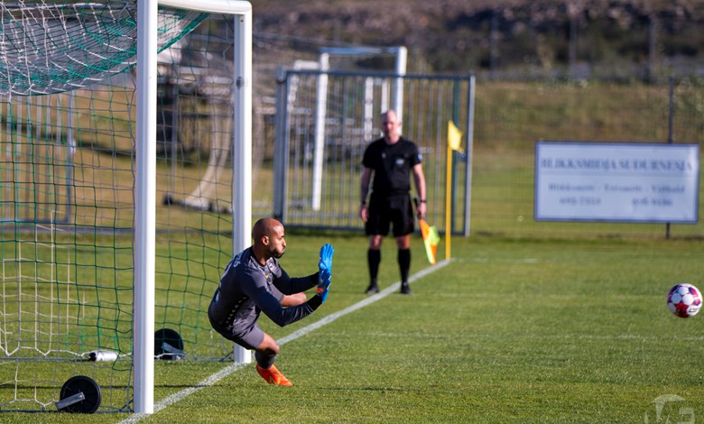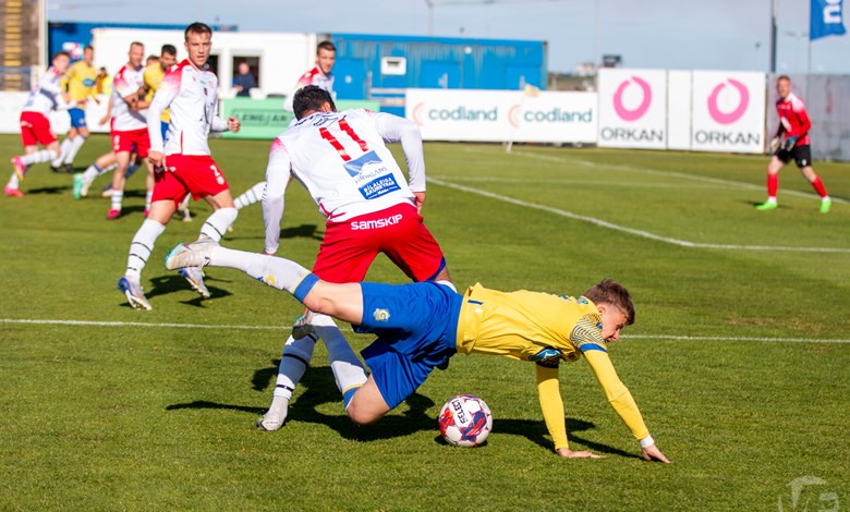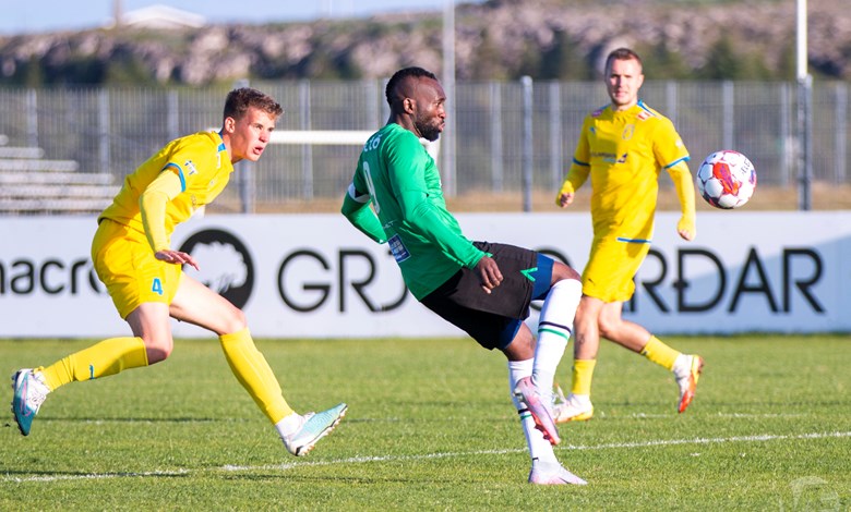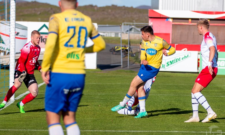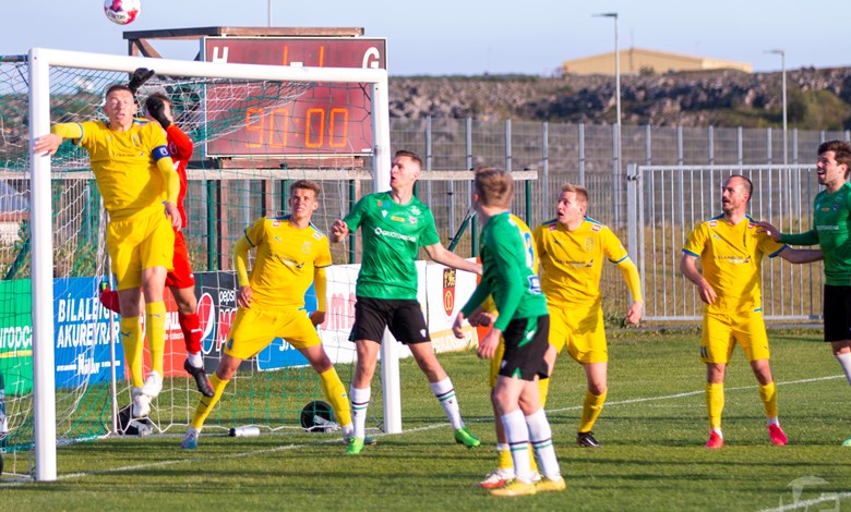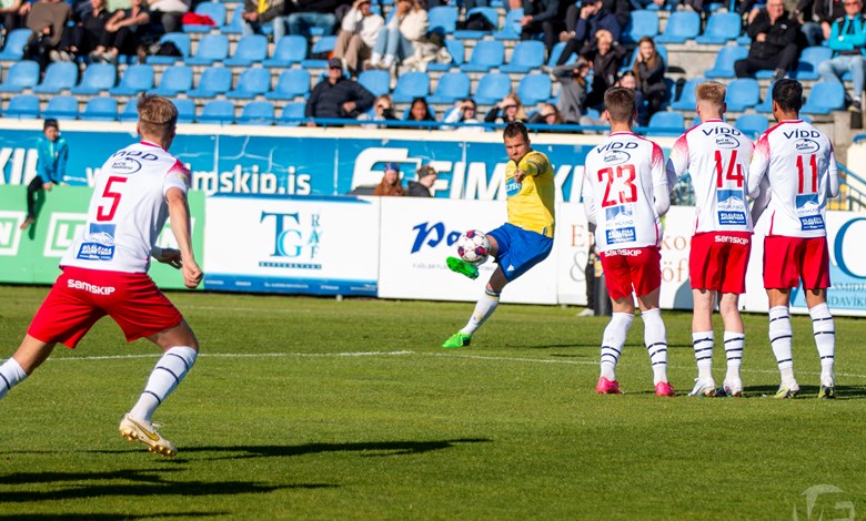 Á 22. mínútu áttu Njarðvíkingar vel útfærða skyndisókn þar sem boltinn barst út á vænginn til Oliver Keelart, hann sendi fyrir markið á Oumar Diouck sem afgreiddi boltann í netið. Keelart var hins vegar dæmdur rangstæður og markið stóð ekki.
