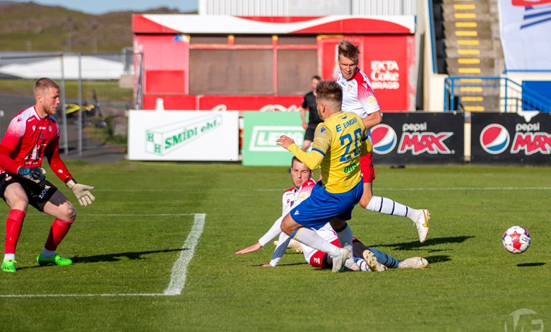 Símon Logi Thasapong var ekki alveg með skotskóna reimaða á sig því hann fékk nokkur dauðafæri en inn vildi boltinn ekki. Dagurinn var svo kórónaður þegar Símon fékk svo að líta gula spjaldið fyrir að reyna að fiska vítaspyrnu en sá sem þetta skrifar var staddur í nokkurra metra fjarlægð og sá atvikið nokkuð vel, í mínum bókum hefði vítaspyrna verið réttur dómur.