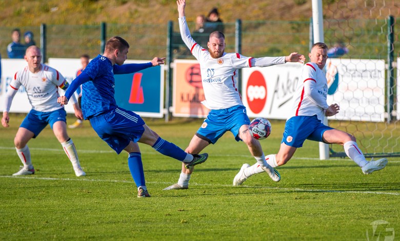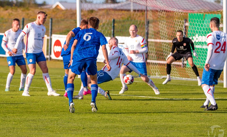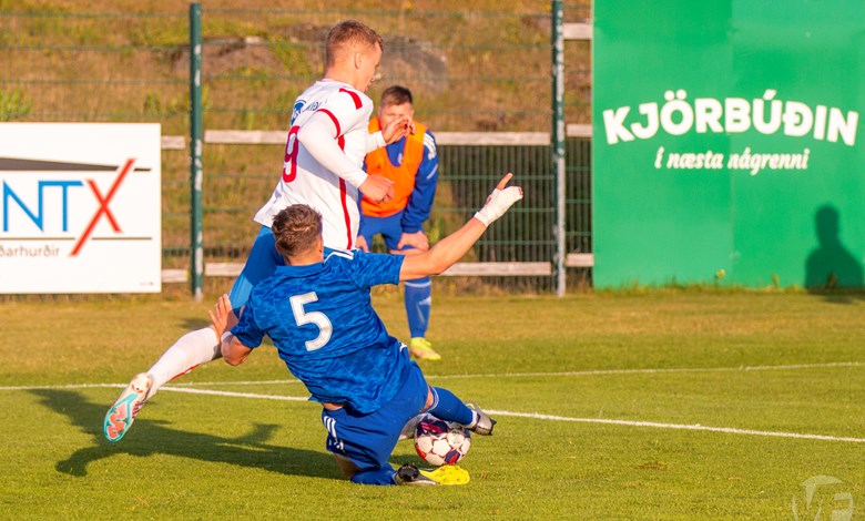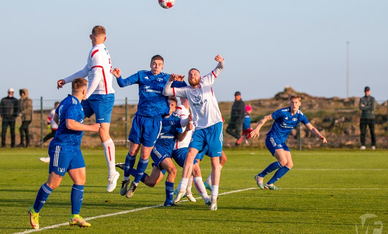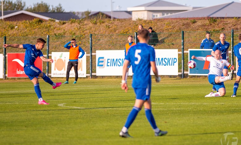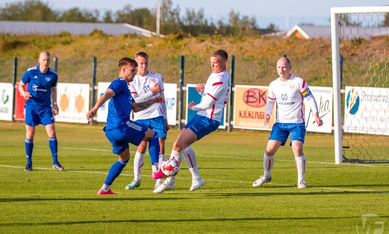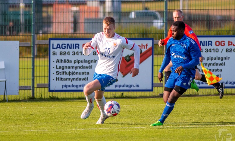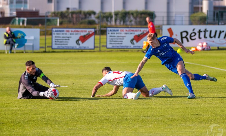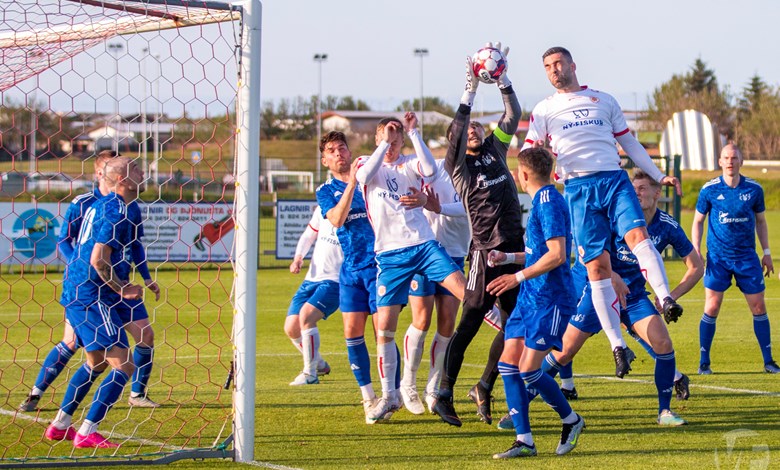 Það var vel mætt á Bronsvöllinn í Sandgerði í gær þegar grannarnir í Reyni og Víði áttust við og eins og við var að búast var ekkert gefið eftir en það mátti greina taugatitring hjá leikmönnum beggja liða í byrjun.