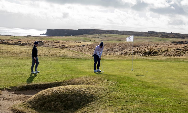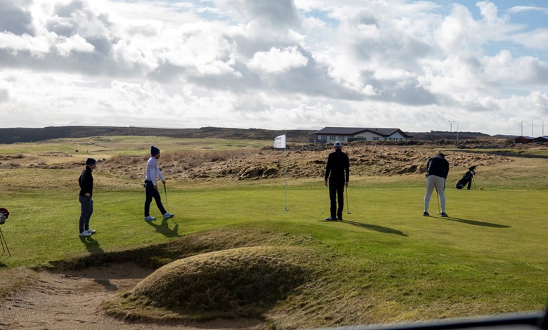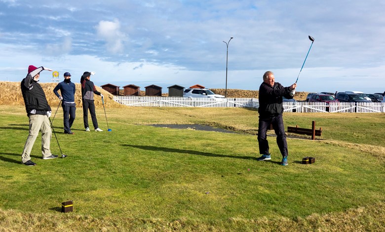 Púttað í bolla samkvæmt COVID-19 reglum.