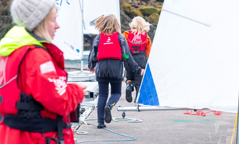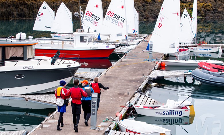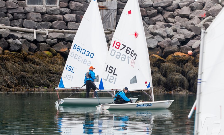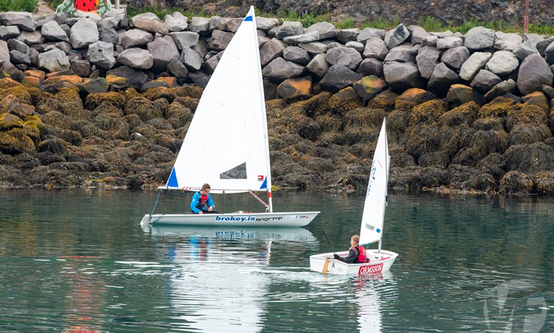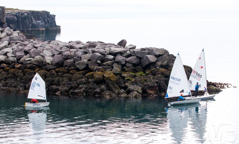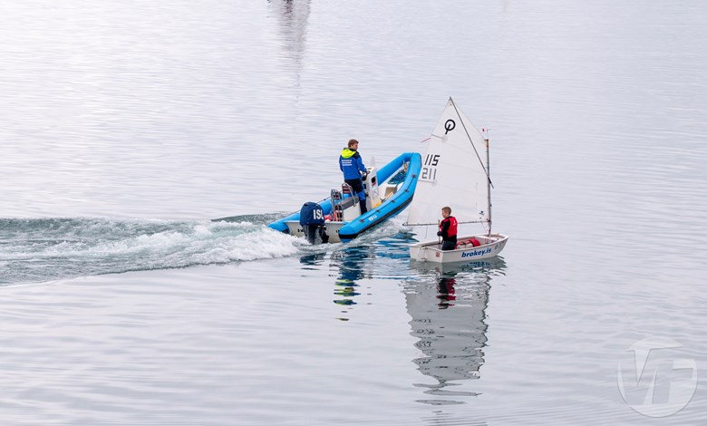 Æfingabúðir Siglingasambands Íslands 2022 voru haldnar á dögunum í samstarfi við Siglingafélagið Knörr í Reykjanesbæ. Flottur hópur efnilegra kænusiglara tók þátt í búðunum til að æfa sig og bæta siglingafærnina við strendur Reykjanesbæjar. Var m.a. haldin siglingakeppni úti fyrir smábátahöfninni í Gróf og vöktu kænurnar athygli vegfarenda þar sem þær sigldu meðfram ströndinni. Þegar ljósmyndara Víkurfrétta bar að var reyndar stafalogn og spegilsléttur hafflöturinn en það eru ekki bestu aðstæður þegar sigla á seglum þöndum.