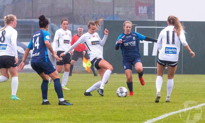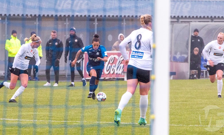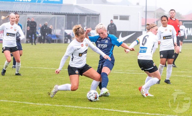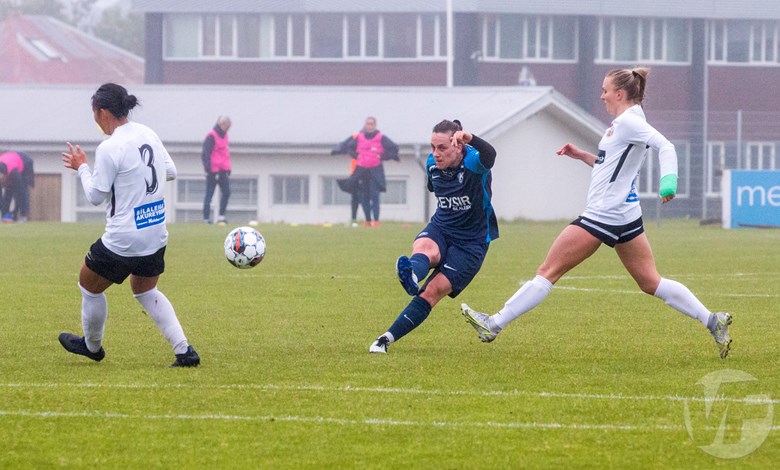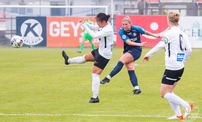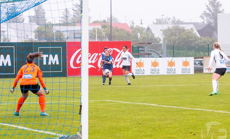 Keflavík og KR áttust við í tíundu umferð Bestu deildar kvenna í dag á HS Orkuvellinum í Keflavík. Keflvíkingar skoruðu þrjú mörk af fjórum en því miður voru tvö þeirra sjálfsmörk og því fóru KR-ingar með sigur af hólmi, 1:3. Grátlegt tap sem setur Keflavík nærri botninum þegar mótið er rúmlega hálfnað.