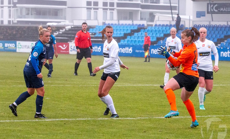 Jóhann Páll Kristbjörnsson, ljósmyndari Víkurfrétta, var á vellinum og tók meðfylgjandi myndir og viðtal við fyrirliðann, Kristrúnu Ýr, eftir leik.