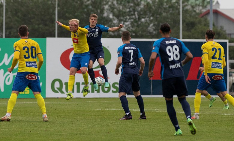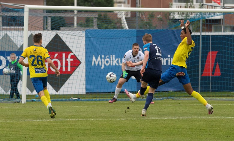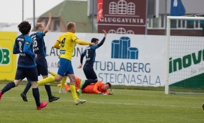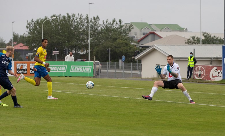 Keflavík hafði yfirhöndina frá byrjun og skapaði sér nokkur hættuleg færi. Það fyrsta fékk afmælisbarn dagsins, Sindri Þór Guðmundsson, þegar hann komst einn á móti markmanni sem gerði vel og varði skotið.