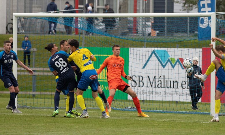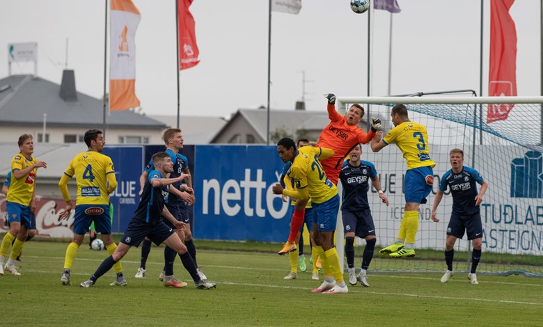 KA sótti stíft fram á lokamínútu en góð vörn Keflvíkinga stóðst álagið og hleypti gestunum ekki lengra. Keflavík hafði því 3:1 sigur og eru komnir í átta liða úrslit.