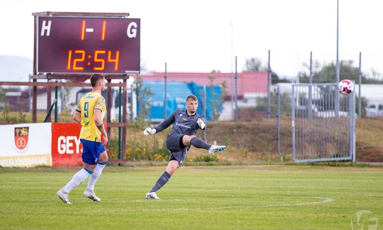 Grindvíkingar settu kraftinn í að jafna og Símon Logi Thasapong, þá nýkominn inn á, átti hörkuskot sem Blakala varði virkilega vel. Skömmu síðar var Óskar Örn nærri því að jafna en skot hans hafnaði í stönginni og Njarðvík því ennþá með forystuna.