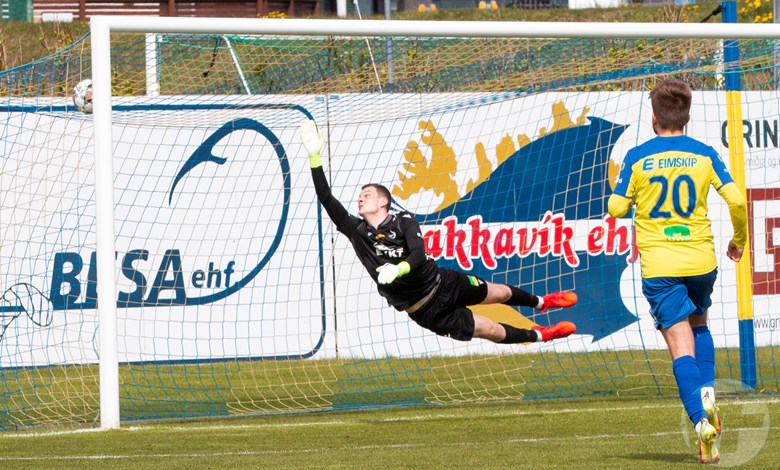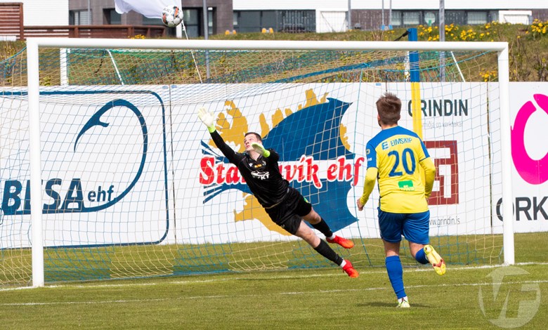 Ekki er hægt að skrifa sigurinn alfarið á Kristófer því öflugur varnarleikur Grindvíkinga og barátta, auk mikilvægrar markvörslu frá Aroni Degi Birnusyni í lok leiks, átti sinn þátt í sigrinum.