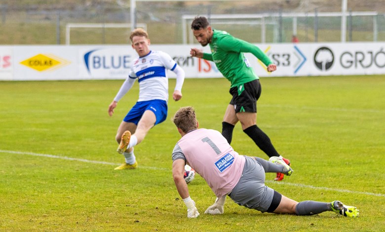 Dominik Radic skoraði snemma leiks eftir góðan undirbúning Tómasar Bjarka Jónssonar sem fór vel í gegnum vörn ÍR-inga með flottu samspili við Kaj Leo Í Bartalstovu, Tómas sendi fastan bolta fyrir markið þar sem Radic kom aðvífandi og afgreiddi sendinguna fagmannlega í netið (5').