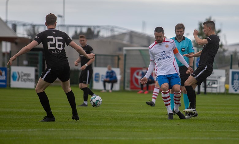 Aðeins þremur mínútum síðar kom Magnús Sverrir Þorsteinsson boltanum í net KV og staðan orðin 3:1 Reynir í vil, þannig stóðu leikar í hálfleik.