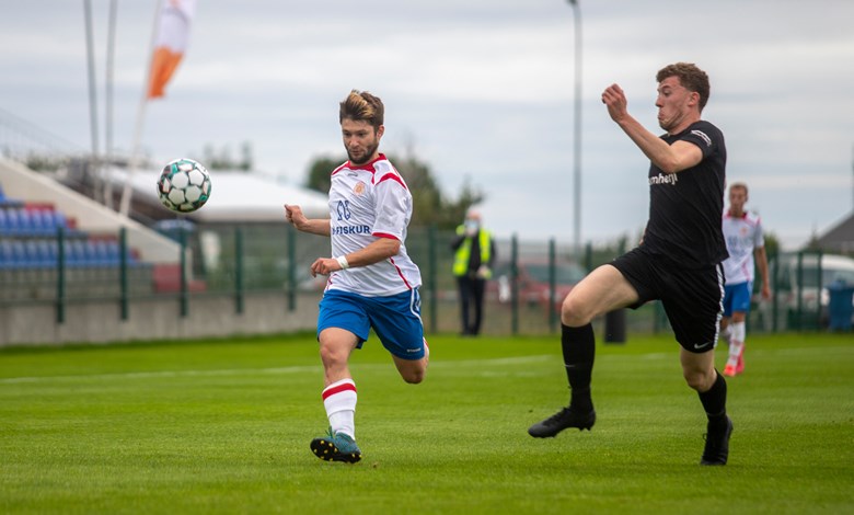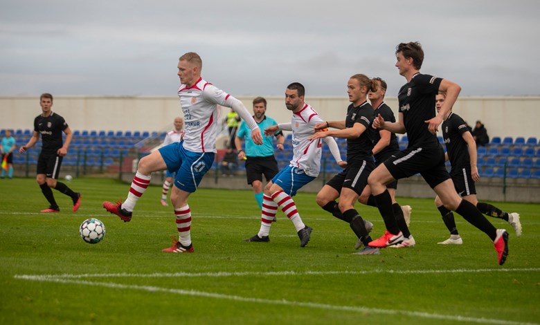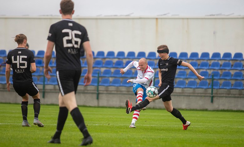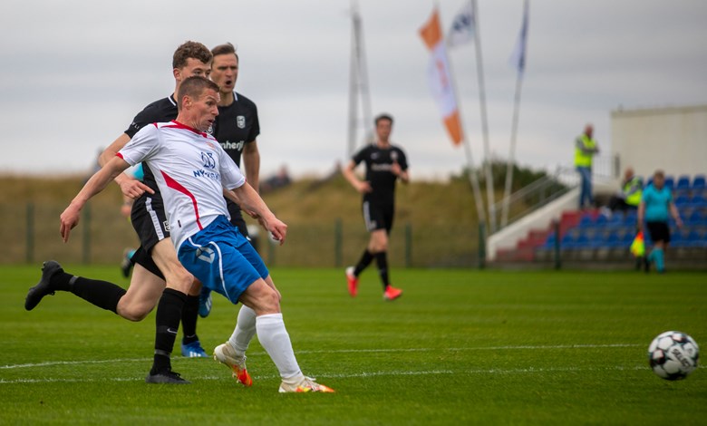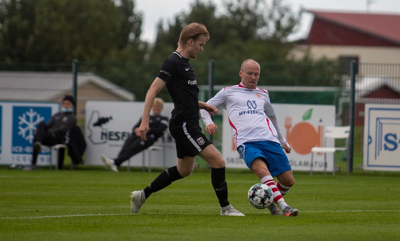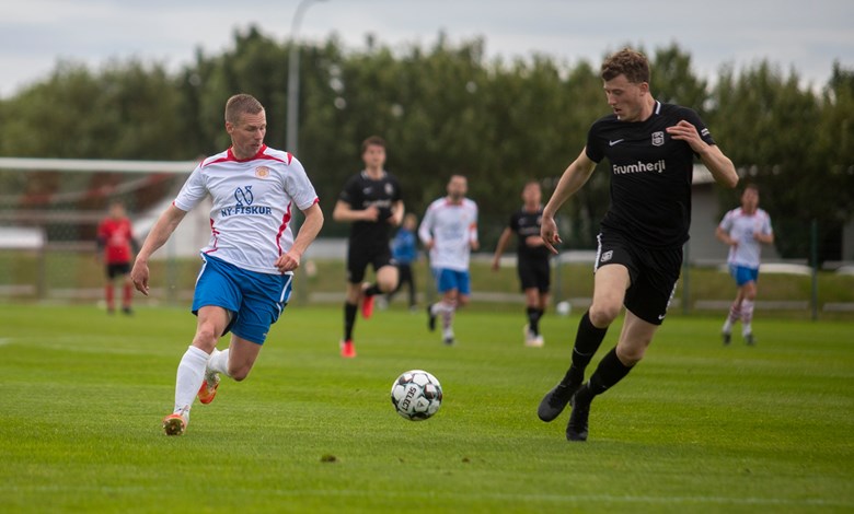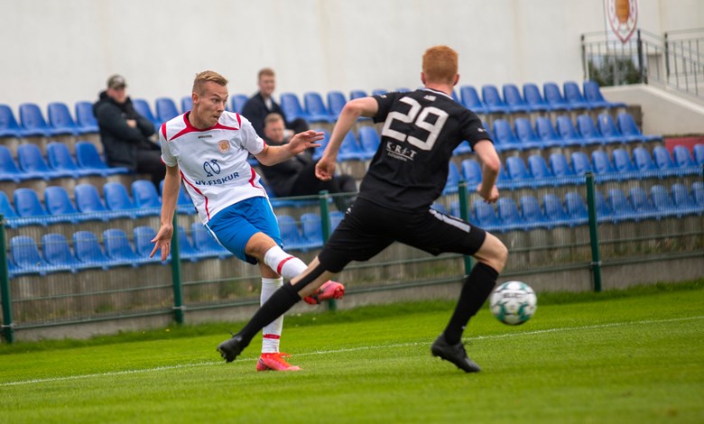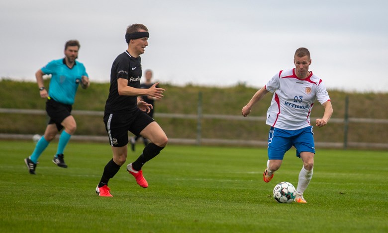 Reynismenn, sem eru taplausir á toppi 3. deildar karla í knattspyrnu, tóku á móti KV í kvöld á Blue-vellinum í Sandgerði. KV, sem situr í öðru sæti deildarinnar, var fimm stigum á eftir Reyni.