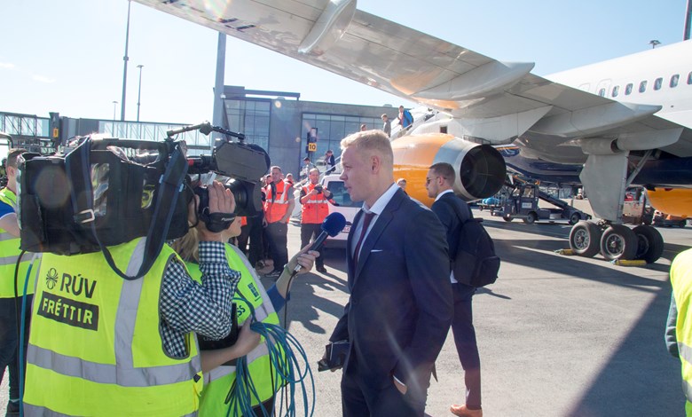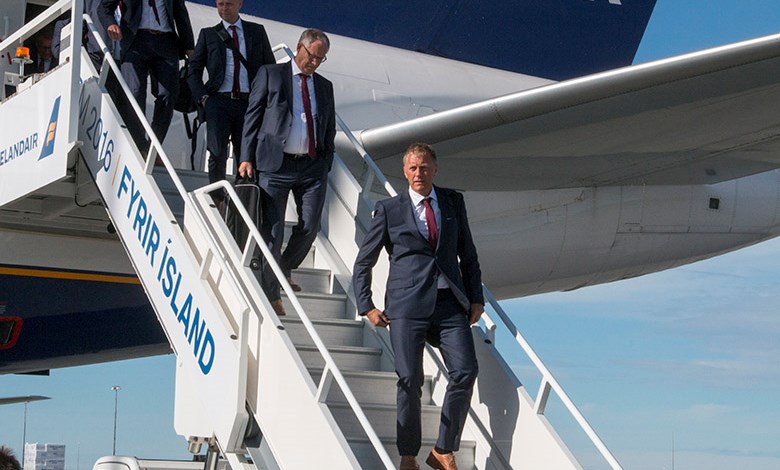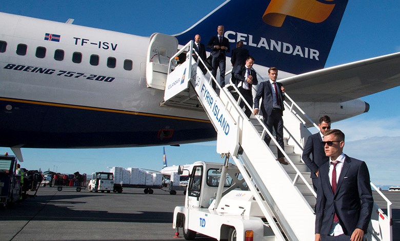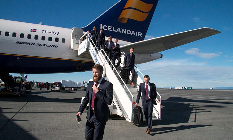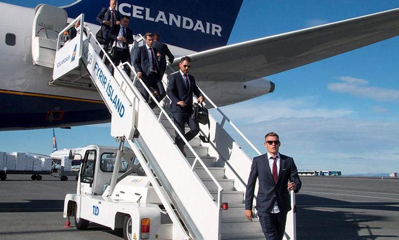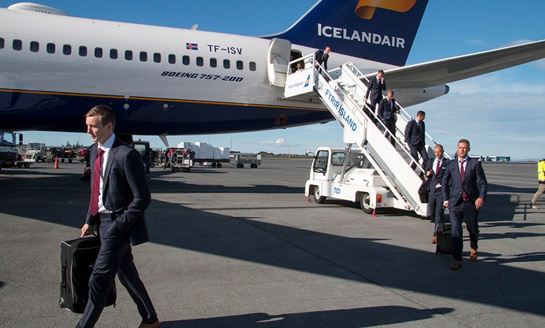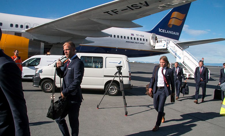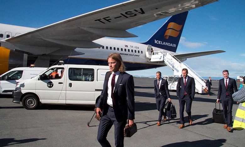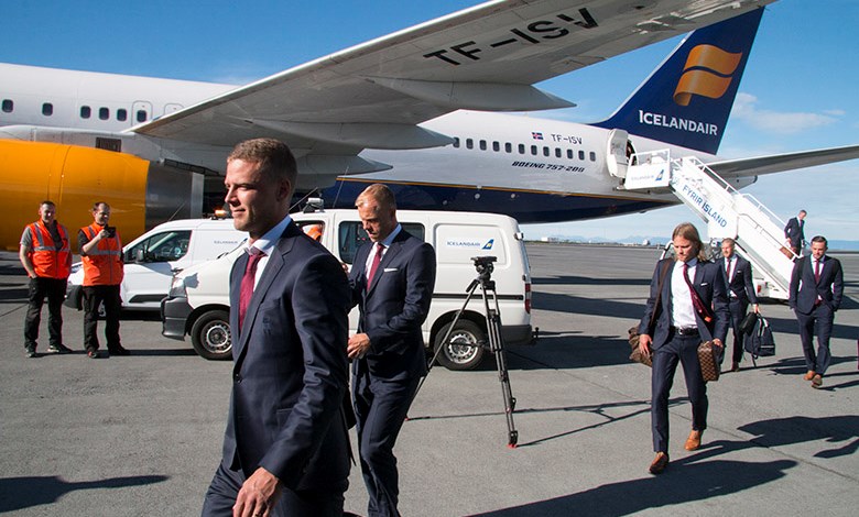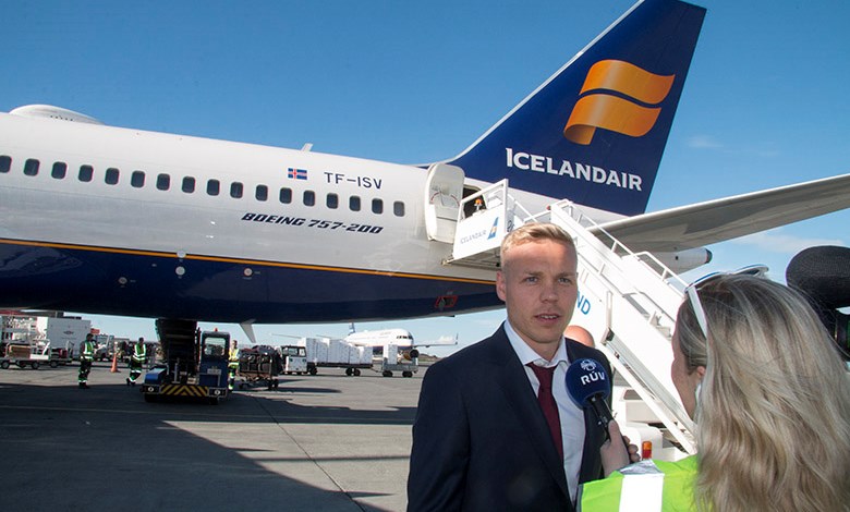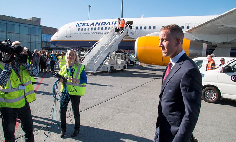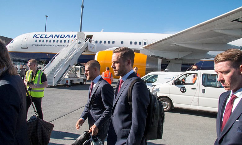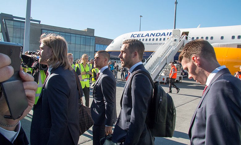 Stemmning þegar landsliðsstjörnur lentu á Keflavíkurflugvelli
