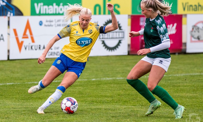 Jóhann Páll Kristbjörnsson, ljósmyndari Víkurfrétta, var á Stakkavíkurvelli í gær og má sjá myndasafn neðst á síðunni. Þá er einnig viðtal við Unu Rós Unnarsdóttur, fyrirliða Grindavíkur, og markvörðinn Söndru Sigurðardóttur í spilaranum hér að neðan.