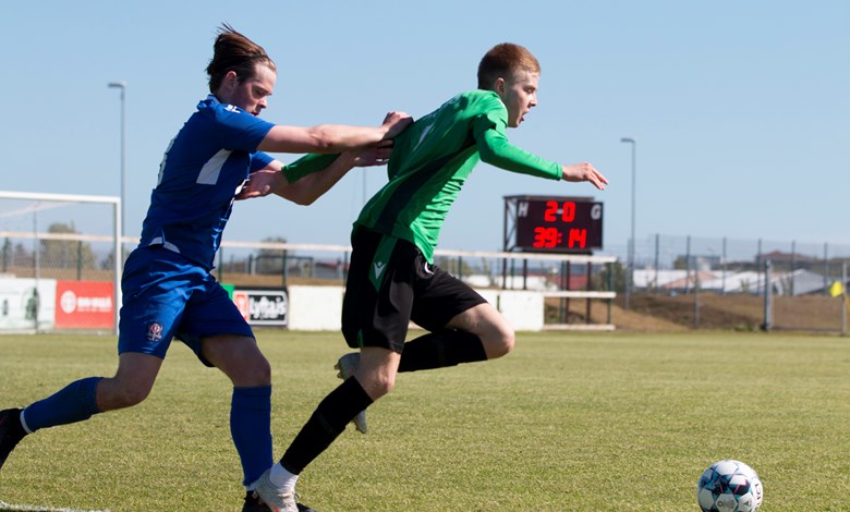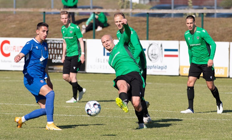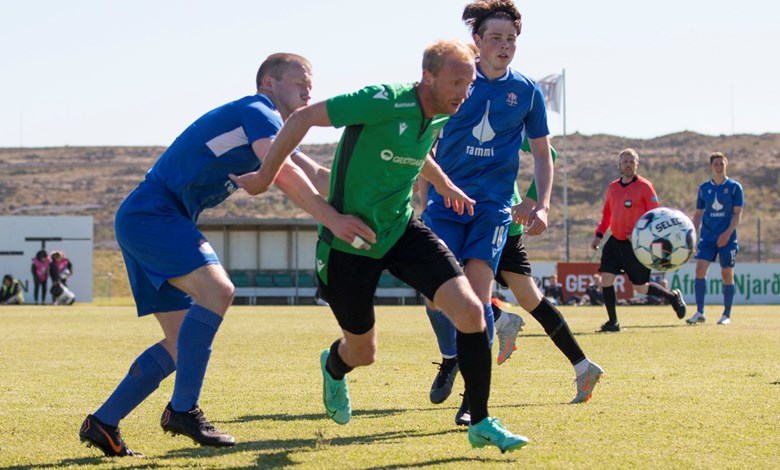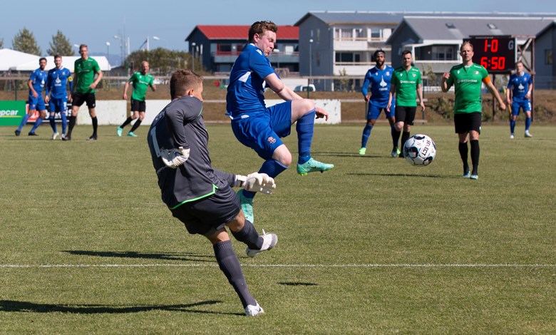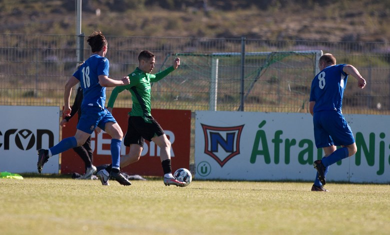 KF frá Fjallabyggð mætti til Njarðvíkur á laugardag og úr varð hörkurimma. Sterkur vindur setti ákveðinn svip á leikinn.