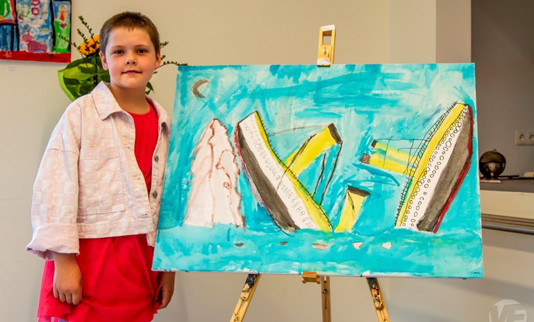 Átta ára myndlistarkona heldur sína fyrstu einkasýningu