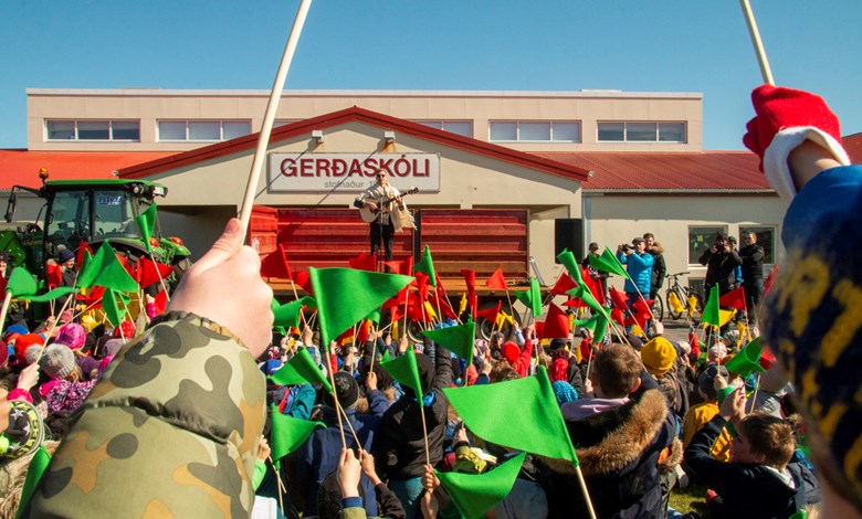 Jón Jónsson, tónlistarmaður lék nokkur lög á gítarinn og söng við góðan róm grunnskólabarna úr Gerðaskóla og leikskólabarna af Gefnarborg. Víkurfréttir litu við og smelltu myndum af flottum krökkum við setningu hátíðarinnar sem nú er haldin fyrr en vanalega.