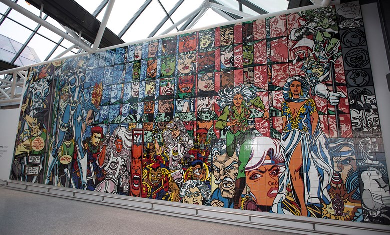 Við afhjúpum á þessum tímamótum veggmyndina Silver Sabler eftir Erró. Verkið, sem var valið af listamanninum og fulltrúum Isavia í sameiningu, er úr handmáluðum keramikflísum. Það var framleitt af Aleluia cerâmicas í Portúgal undir eftirliti listamannsins, en þetta sama fyrirtæki hefur framleitt aðrar keramíkmyndir listamannsins sem eru á almannafæri í Reykjavík. Verkið er eftirmynd málverks frá árinu 1999 með sama nafni, en hefur hér verið stækkað upp í keramikmynd sem er 4,5m há og 11m breið.