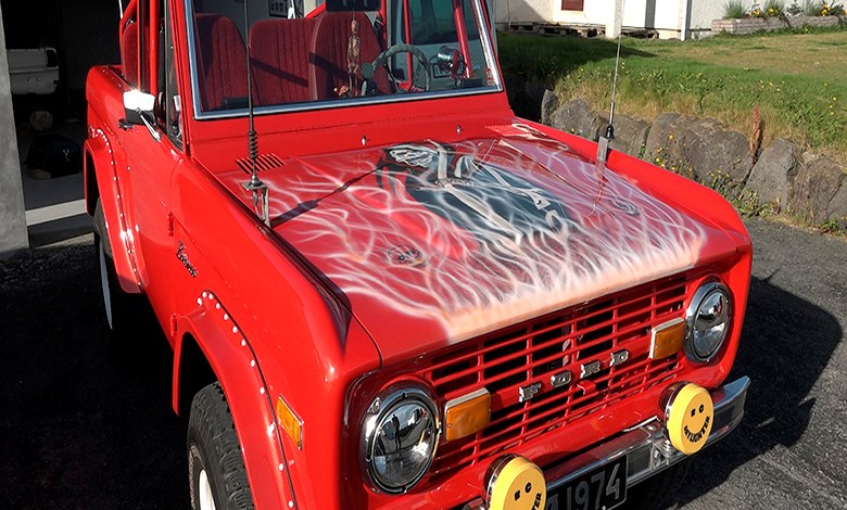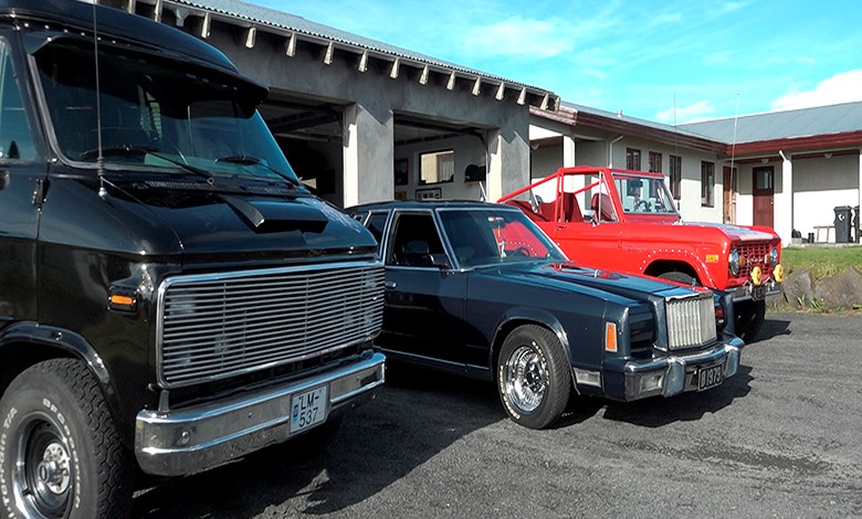 Einar var búinn að taka flotann sinn út úr skúrnum þegar blaðamaður kom í heimsókn, enda sól í heiði og dagur til að viðra fallega bíla. Þarna voru Chrysler New Yorker, Ford Bronco og Chevrolet Van. Einar segist ekki hafa mikið af lausafé og því reyni hann að eignast sína bíla fyrir lítið og leggi frekar á sig meiri vinnu við að endurbyggja bílana. Hann viðurkennir að sumir bílarnir hafi komið til hans í slæmu ástandi og oft í mörgum kössum.