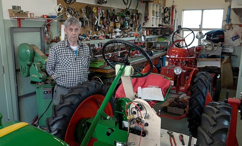 Í þar næsta húsi við Einar á Hólagötunni býr Anton Númi Magnússon. Hann er fyrrverandi pípulagningamaður en ver nú öllum stundum í bílskúrnum við að endurbyggja traktora. Traktorarnir hjá Antoni eru mikil listasmíð og útlitið á þeim er eins og þeir séu nýir úr kassanum frá verksmiðju. Hann segist líka vilja komast eins nálægt upprunalegu útliti og áferð og mögulegt er.
