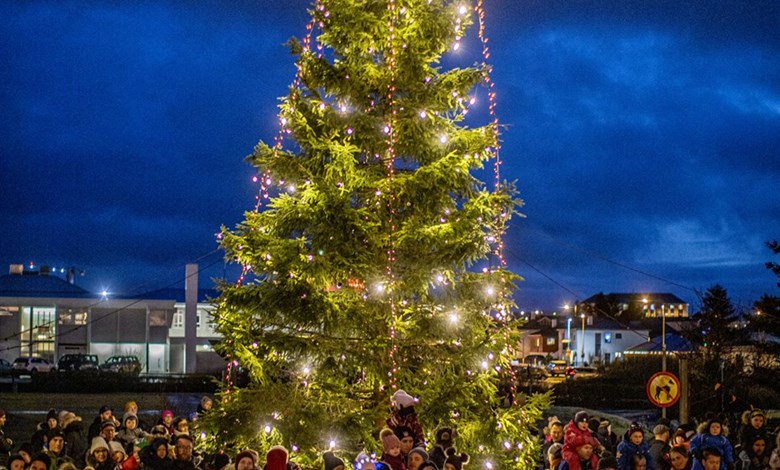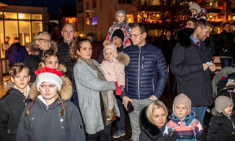 Ljósin á vinabæjarjólatrénu frá Kristiansand voru tendruð í fimmtugasta og áttunda sinn sl.laugardag á ráðhústorgi í Reykjanesbæ.
