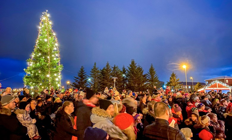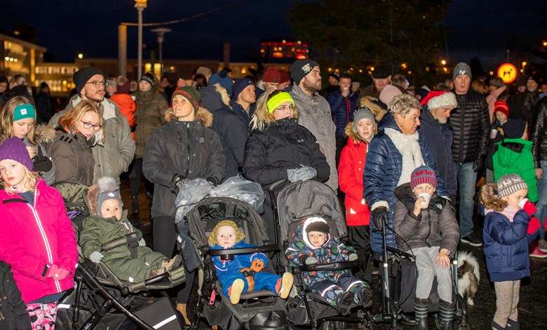 Dagskráin á ráðhústorginu var hefðbundin í ár. Mats Benestad sendiráðsritari í sendiráði Noregs á Íslandi flutti bæjarbúum kveðju frá Kristiansand á fínni íslensku. Mats kemur frá norska bænum og tók við þakkarskjölum sem Jóhann Friðrik Friðriksson, forseti bæjarstjórnar, afhenti honum eftir að hafa tekið formlega á móti trénu.