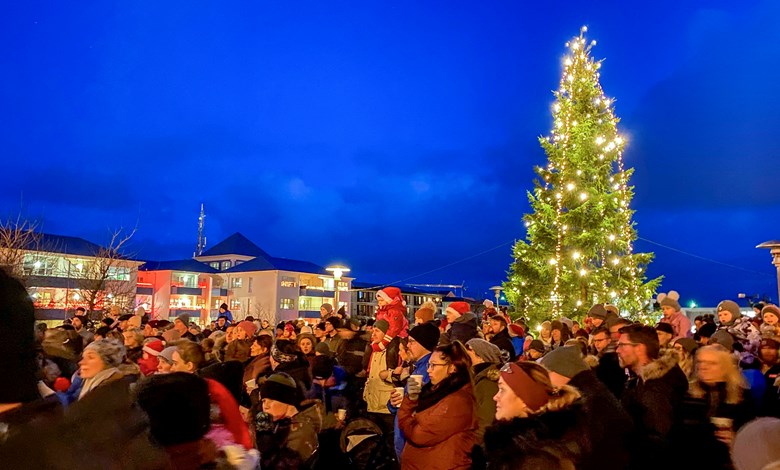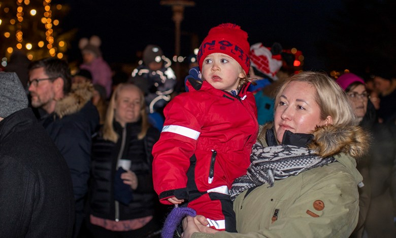 Síðasta tréð frá Kristiansand uppljómað á ráðhústorgi