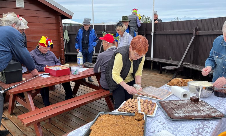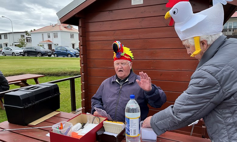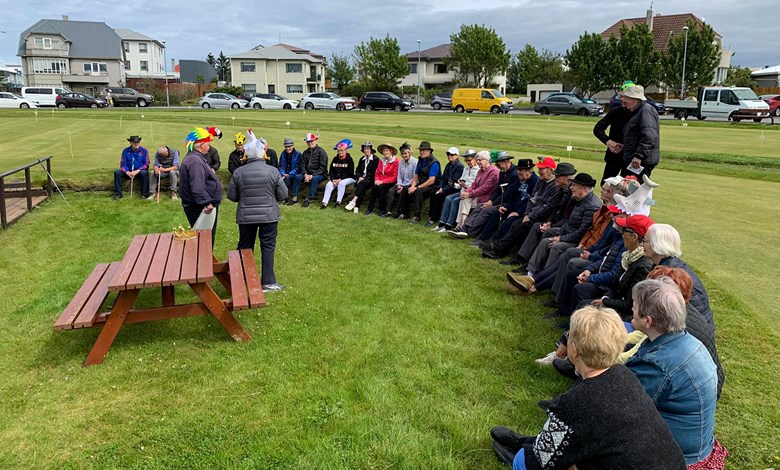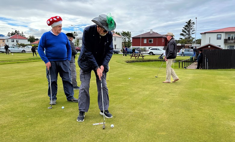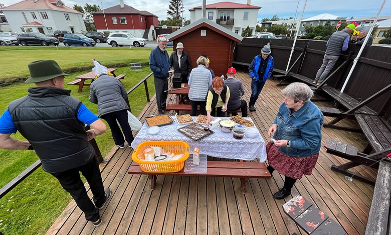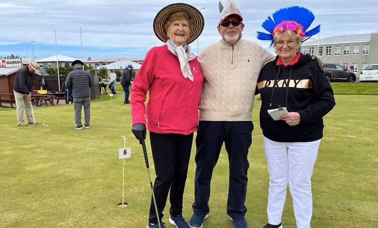 Eftir að hafa spilað hring saman á vellinum gæddu þátttakendur sér á kaffi, vöfflum og kökum og veitt verðlaun fyrir flottasta höfuðfatið. Þátttakendur kusu um það hver bar flottasta hattinn og voru þau Jónas Franzson og Gunnþórunn Gunnarsdóttir kosin hattakóngur og hattadrottning þetta árið. Eydís, sem er oftast kölluð Dísa, segir mótið alltaf vera jafn skemmtilegt. „Þetta er dásamlegt fyrir fólk til þess að hafa eitthvað að gera og hreyfa sig í góðum félagsskap,“ segir hún.