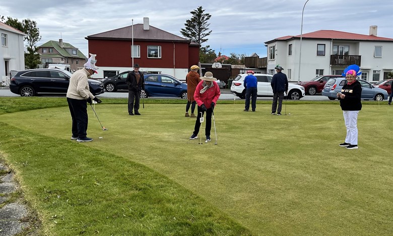 Góð þátttaka var á árlegu hatta-púttmóti sem haldið var níunda árið í röð á púttvellinum Mánaflöt þann 19. júlí. Þau Eydís Eyjólfsdóttir og Hafsteinn Guðnason standa að mótinu en um er að ræða púttmót þar sem þátttakendur spila hring á vellinum og skarta litríkum og skrautlegum höfuðfötum og frjálsum upphæðum safnað til styrktar Íþróttafélagsins Ness.