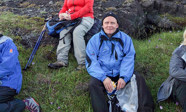 Gengið var með stórbrotnu Háaberginu sem virðist vera að molna í Atlantshafið. Fallegt veður og fallegt kvöld.