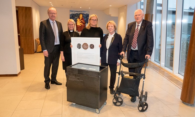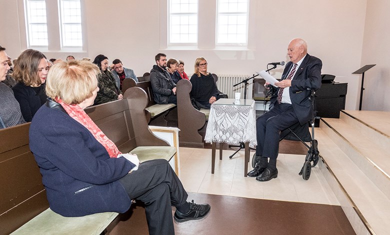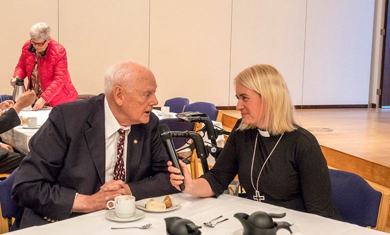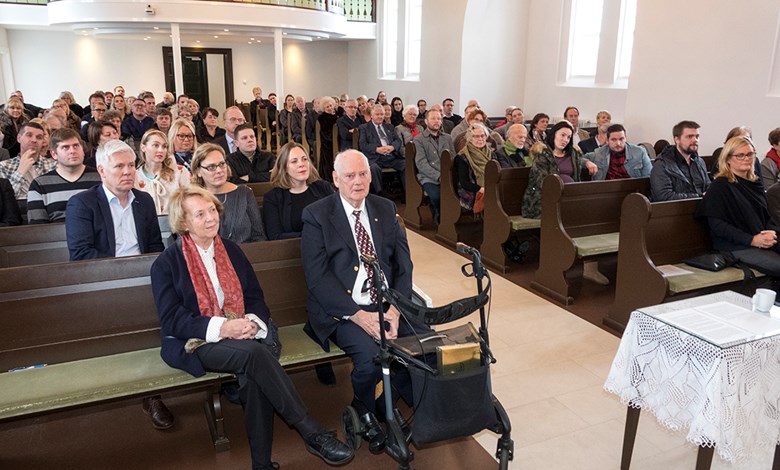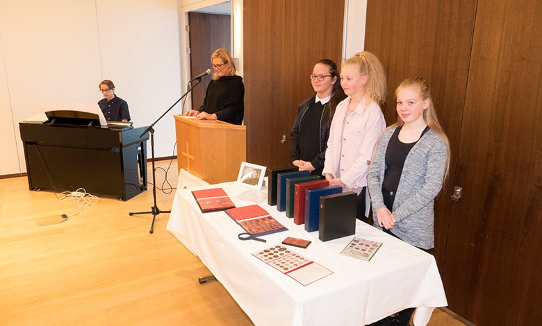 Hann minntist þess einnig hvernig myntsöfnunin hófst: „Það var einmitt eftir níu ára aldurinn sem við strákarnir þorðum að leika okkur í fjörunni á svæðinu milli Framness og Miðbryggjunnar, en þar á milli var bæði Myllubakkinn, kletturinn Snasi, sem flæddi yfir á flóði, og Edinborgarbryggjan, sem einnig flæddi yfir á flóði, fallega hlaðin bryggja. Nú er þessi bryggja komin undir urð og grjó, og í framtíðinni munu fornleifafræðingar finna hana sem merkilegan hlut. Það var rétt fyrir vestan bryggjuna sem ég fann pening vel skorðaðan milli steina. Þetta reyndist vera hálft enskt penný með ártalinu 1854, mynd af Viktoríu drottningu, en hún var eins og þið munið krýnd árið 1837. Ég var mjög montinn með þennan pening og sýndi öðrum, bæði jafnöldrum og eldri strákum. Svo var það einn, nokkru eldri en ég, sem síðar vildi skipta við mig og láta mig fá heilt penný með ártalinu 1926, sem ég gerði og hélt um leið að ég hefði hagnast vel,“ sagði Guðjón og uppskar hlátur hjá kirkjugestum og sjálfur brosti hann við.