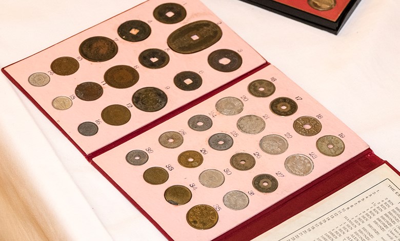 „Þetta gerði ég, svo hér er minnst á upphaf söfnunarinnar, sem hefur staðið með löngum hléum, en öllu haldið til haga. Þetta safn er með mynt frá 145 löndum. Þar eru 1.631 peningur og enginn eins, þeim er raðað eftir þjóðum, m.a. eru þar peningar frá því árið 180-145 fyrir Kristsburð, þar eru peningar sem sýna verðgildið í skildingum, aurum og brauði. Flestir peningar eru frá Stóra Bretlandi, 85 stk. og Danmörku 77, þetta skýrist m.a. af því að þjóðhöfðinginn breytti hárgreiðslunni nokkrum sinnum, eða að kórónurnar voru breytilegar, en þessi atriði gáfu tilefni til að slá nýjan pening,“ sagði Guðjón.
