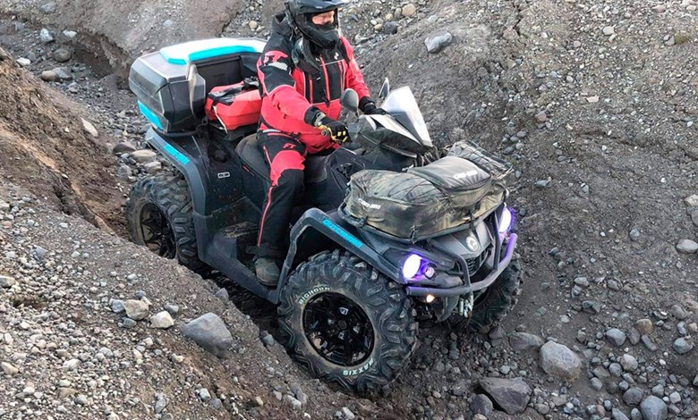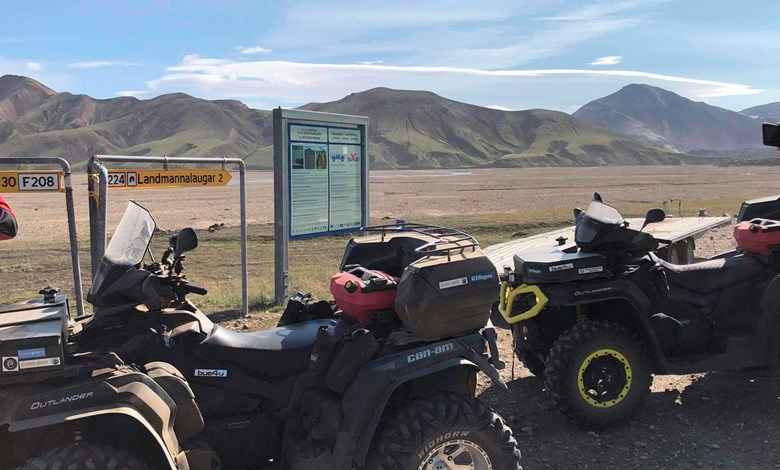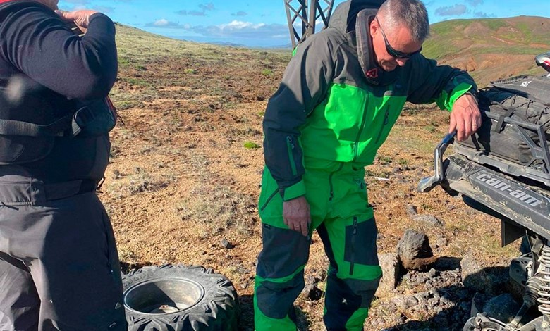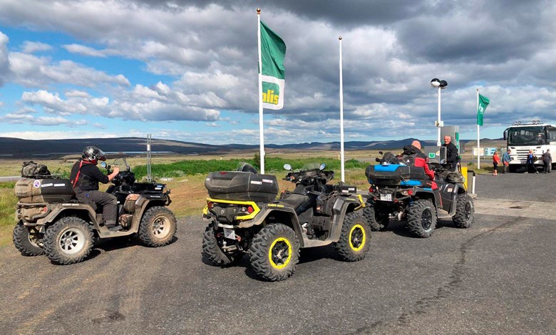 Ferðalagið þvert yfir landið, eða horn í horn, hófst við litla vitann á Reykjanesi og síðan var farið eftir slóðum og línuvegir voru eknir og þeim félögum tókst að þvera landið án þess að fara mikið á malbik. „Malbikið er versti óvinur fjórhjólsins, því dekkin eyðast svo hratt upp á því,“ segir Guðbergur.